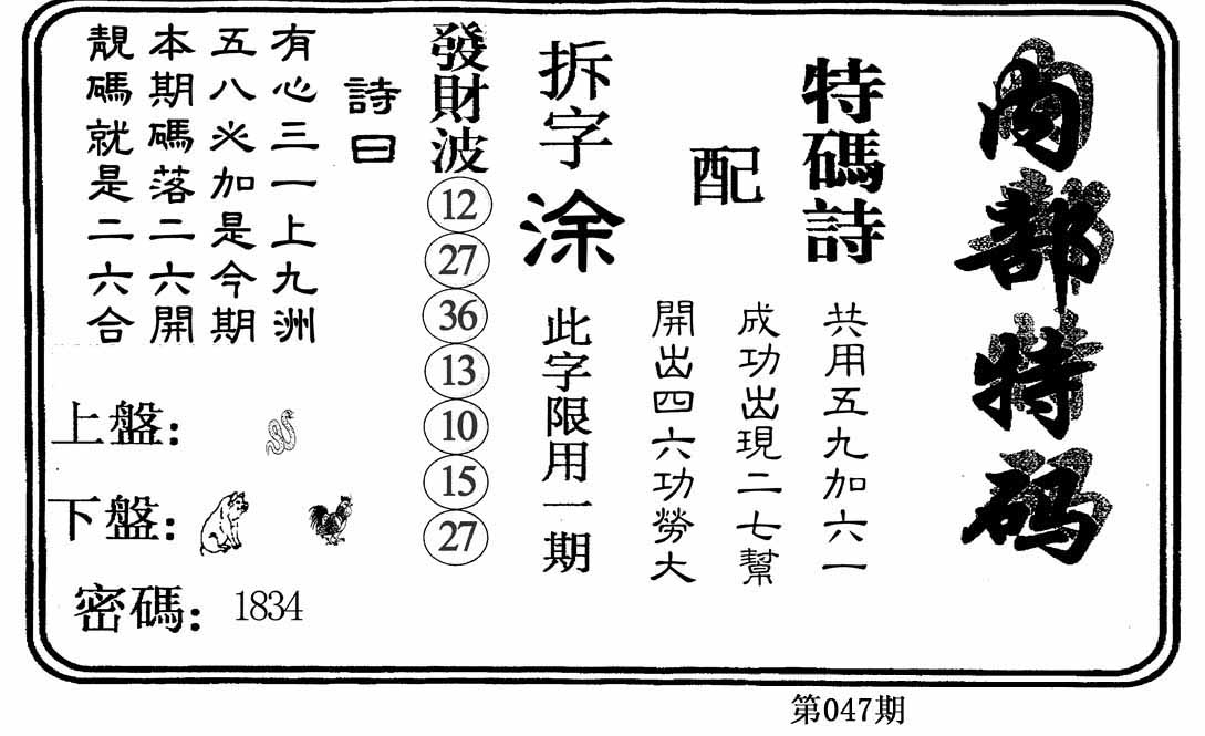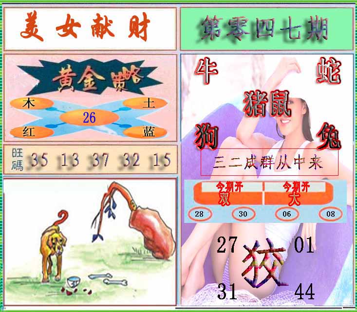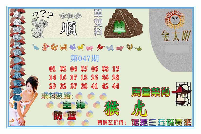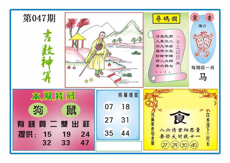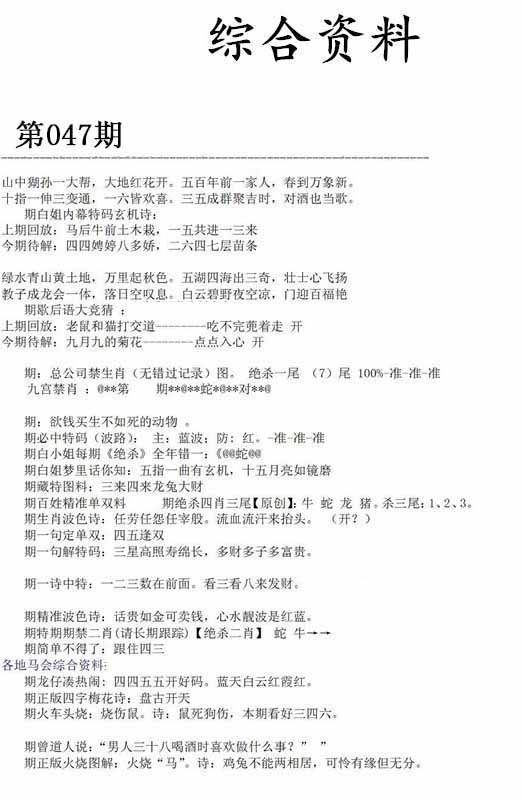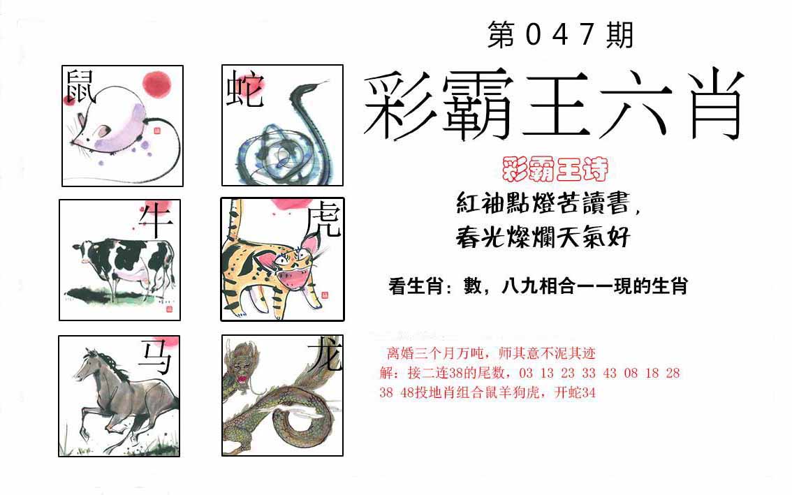 | 047期:⑦肖 | 蛇猴兔龙羊虎牛 | 0 |
