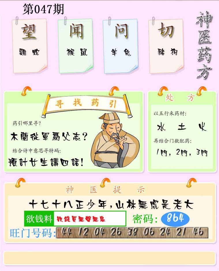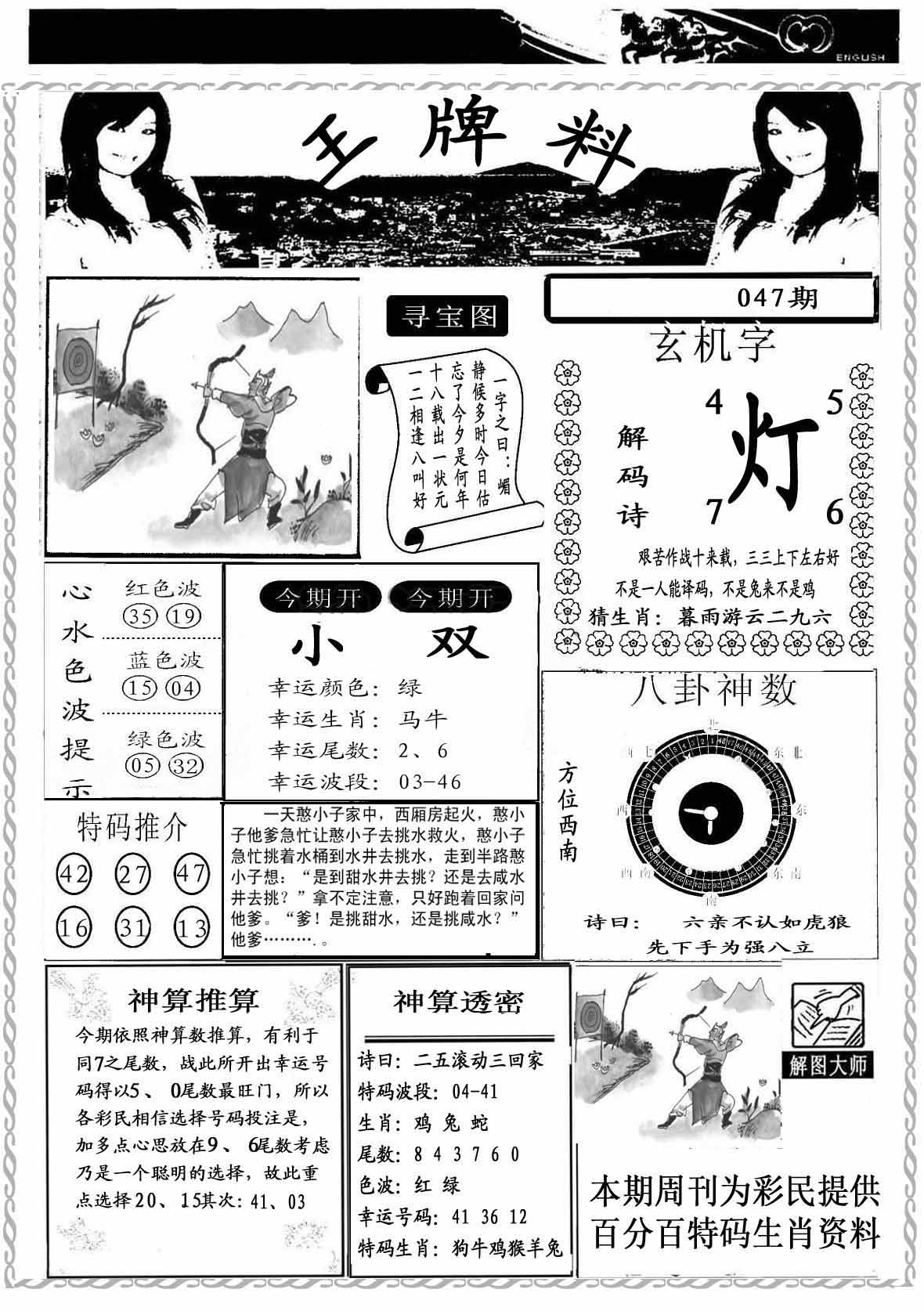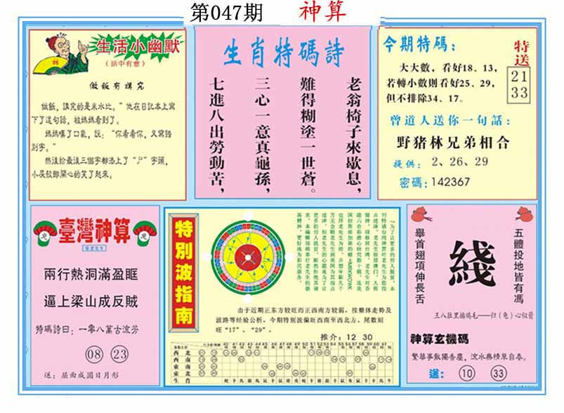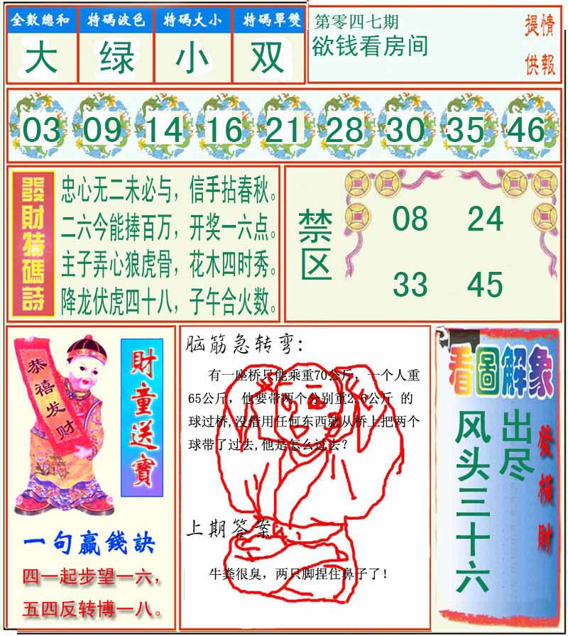 | 047期:⑦肖 | 蛇猴兔龙羊虎牛 | 0 |