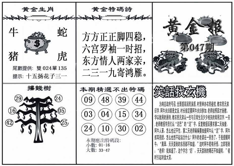 | 042期: 金牛王 【双数+大数】开:猪43准 |