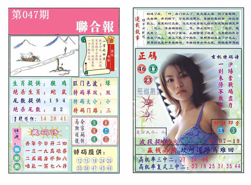 | 047期: 幸运一组三中三→规律①肖①码←7连中 | |