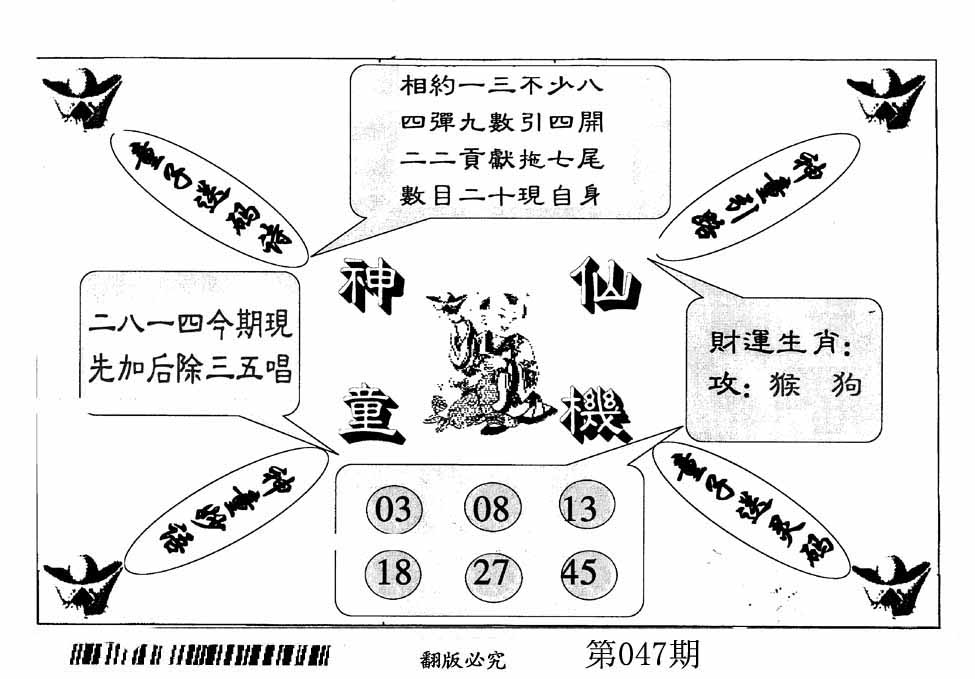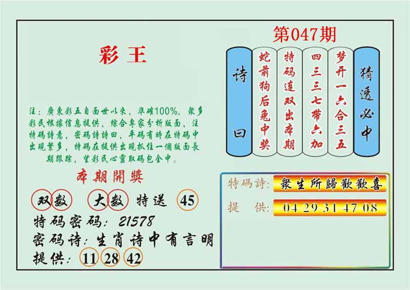 | 047期 :平特一尾✰03-13-23-33-43 |
