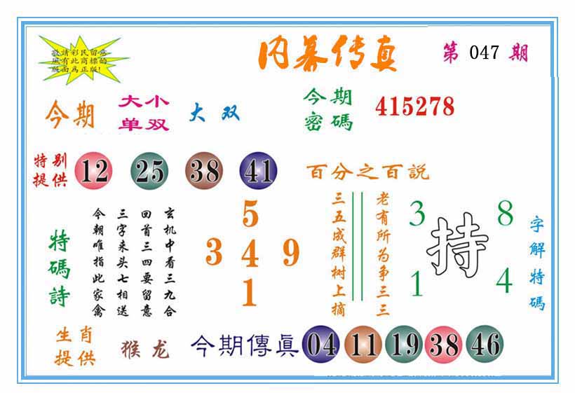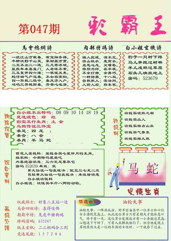 | 047期:⑤肖 | 蛇猴兔龙羊 | 0 |