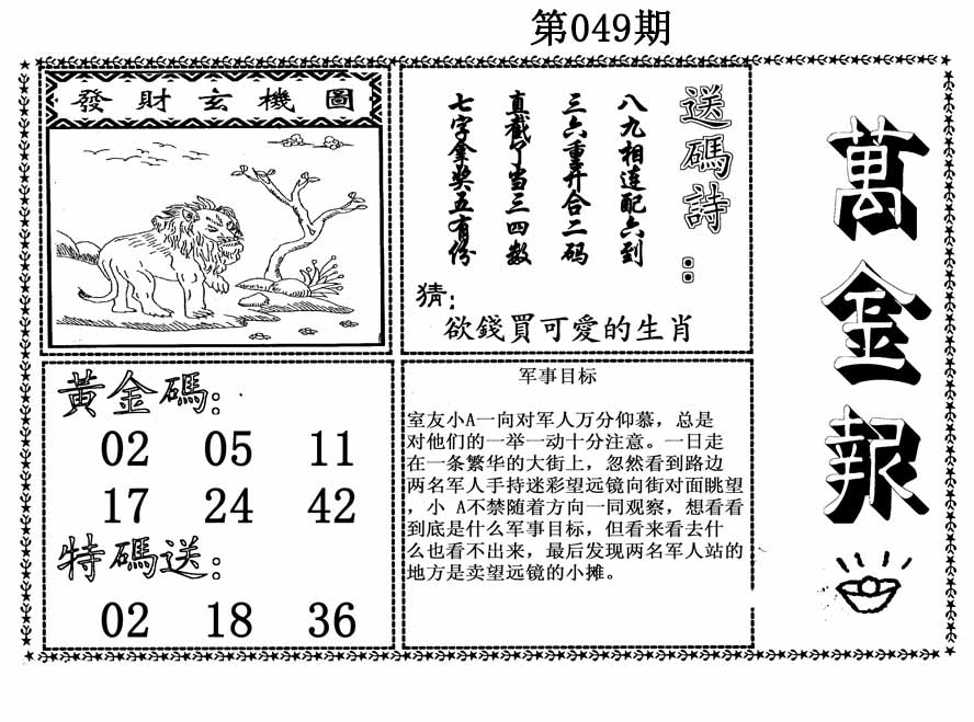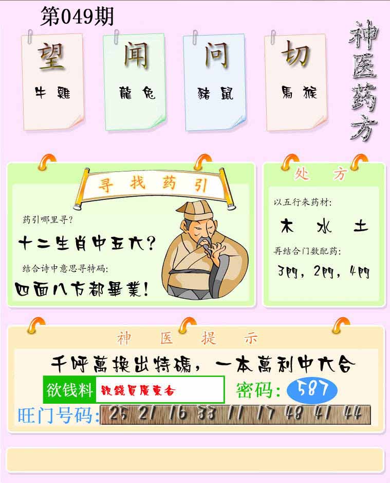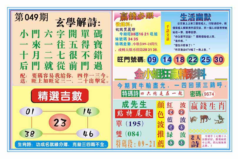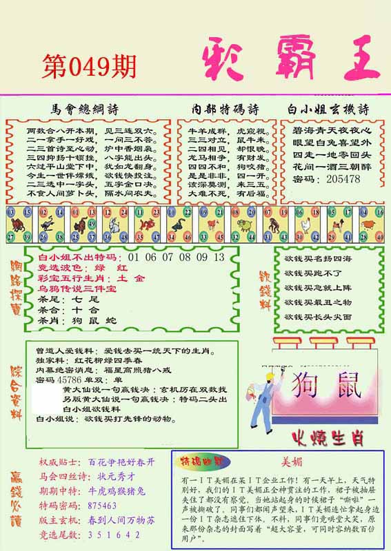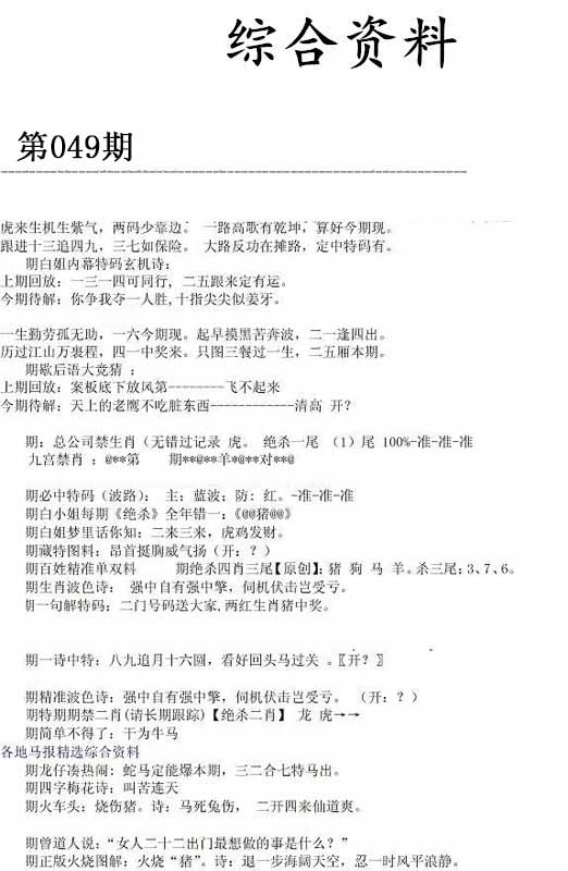 | 049期:⑤肖 | 虎鼠鸡兔猪 | 0 |