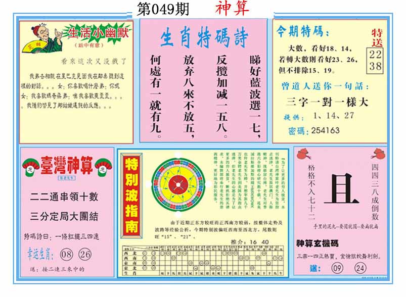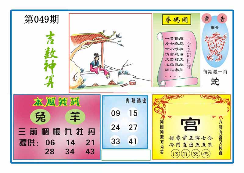 | 047期:⑤肖 | 蛇猴兔龙羊 | 狗08 |