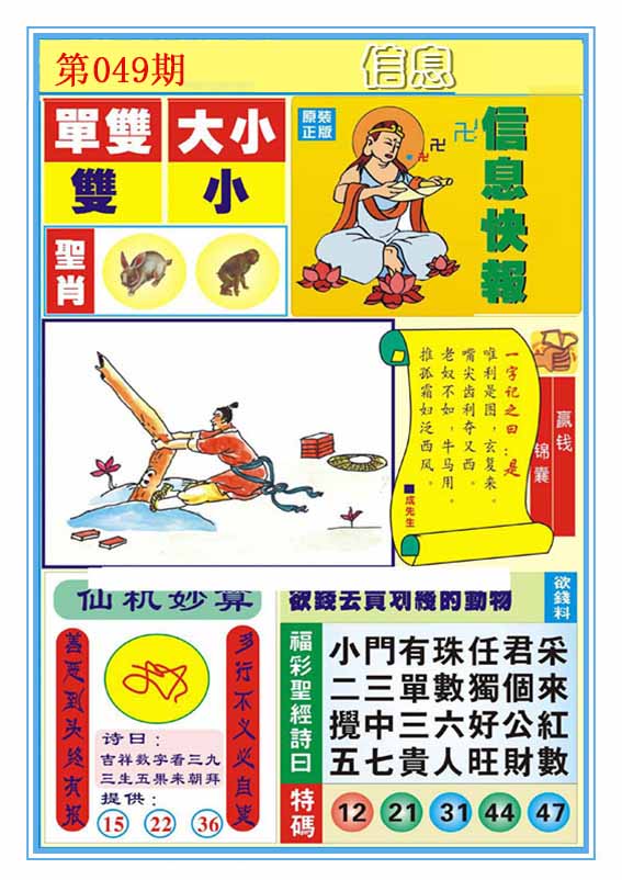 | 049期:【神算子】●平特一肖●专家●二肖中特★ | |