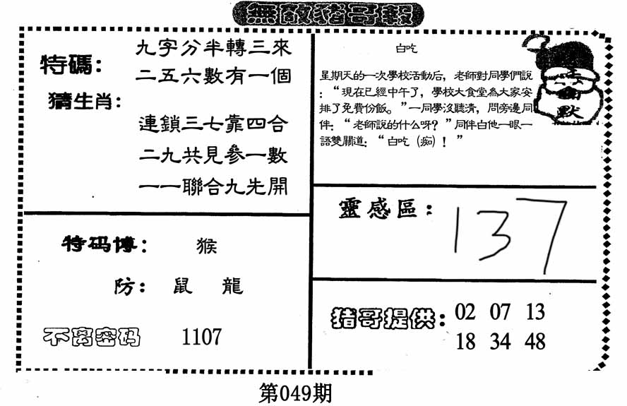 | 049期:⑦肖 | 虎鼠鸡兔猪牛蛇 | 0 |