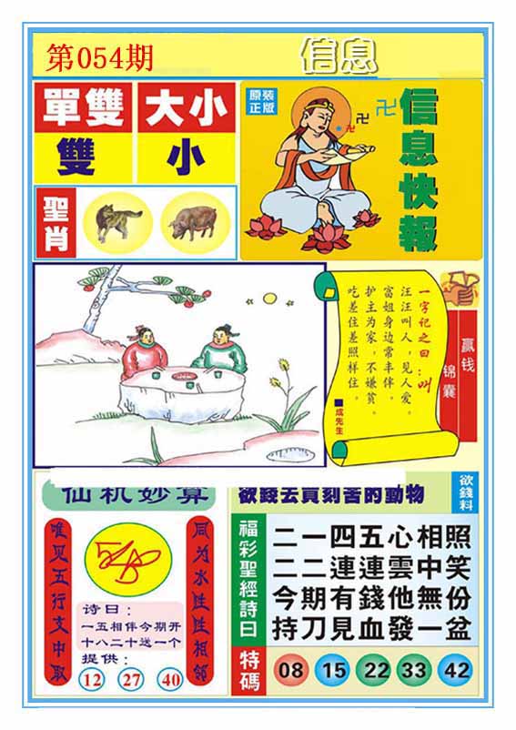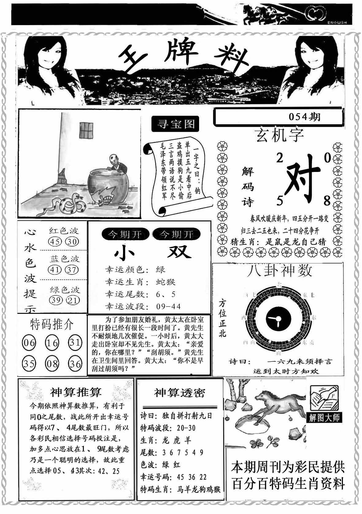 | 054期:【神算子】●平特一肖●专家●二肖中特★ | |