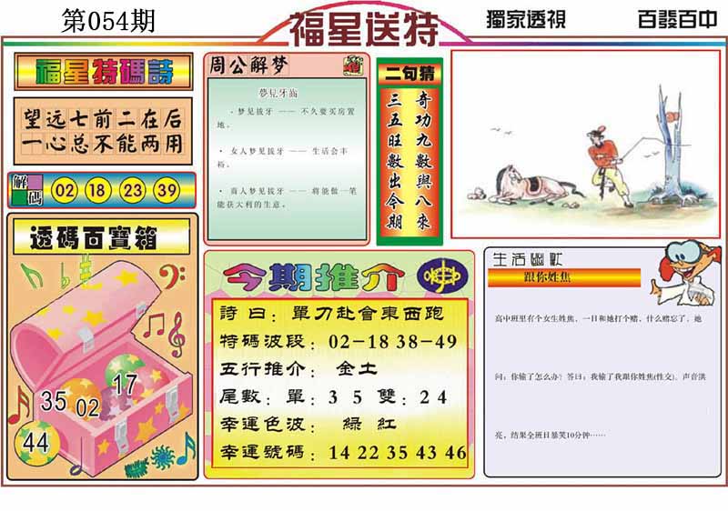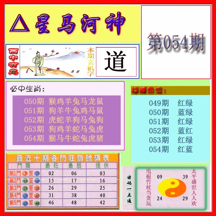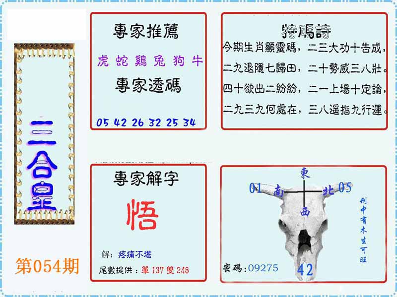 | 052期:⑤肖 | 虎龙兔马狗 | 猪20 |