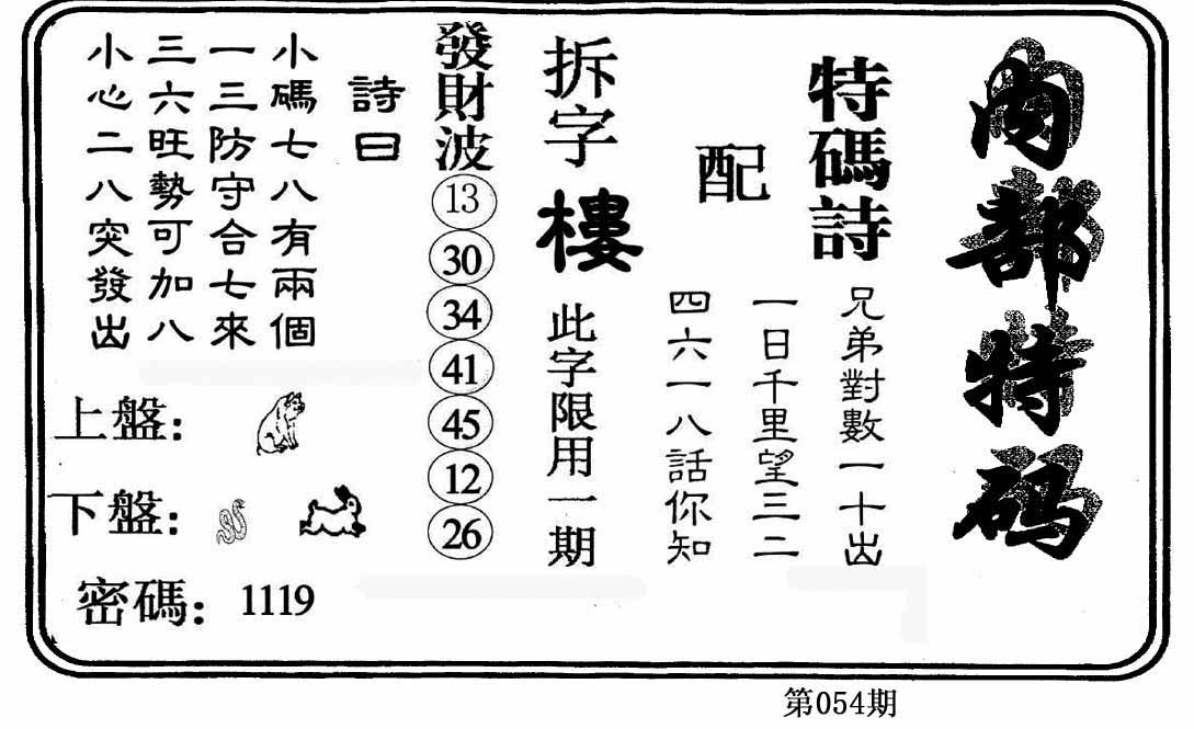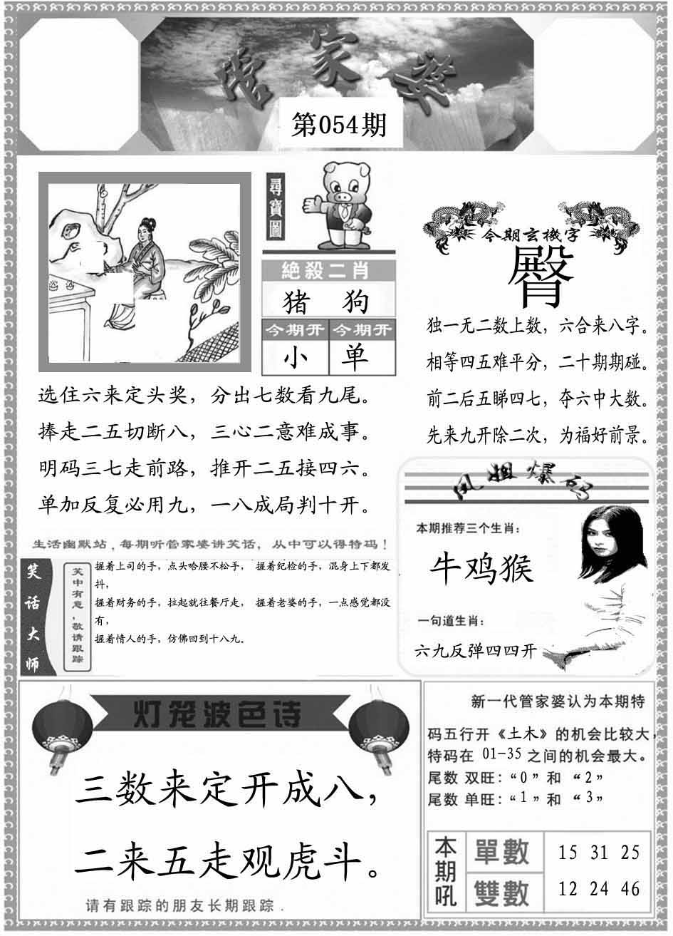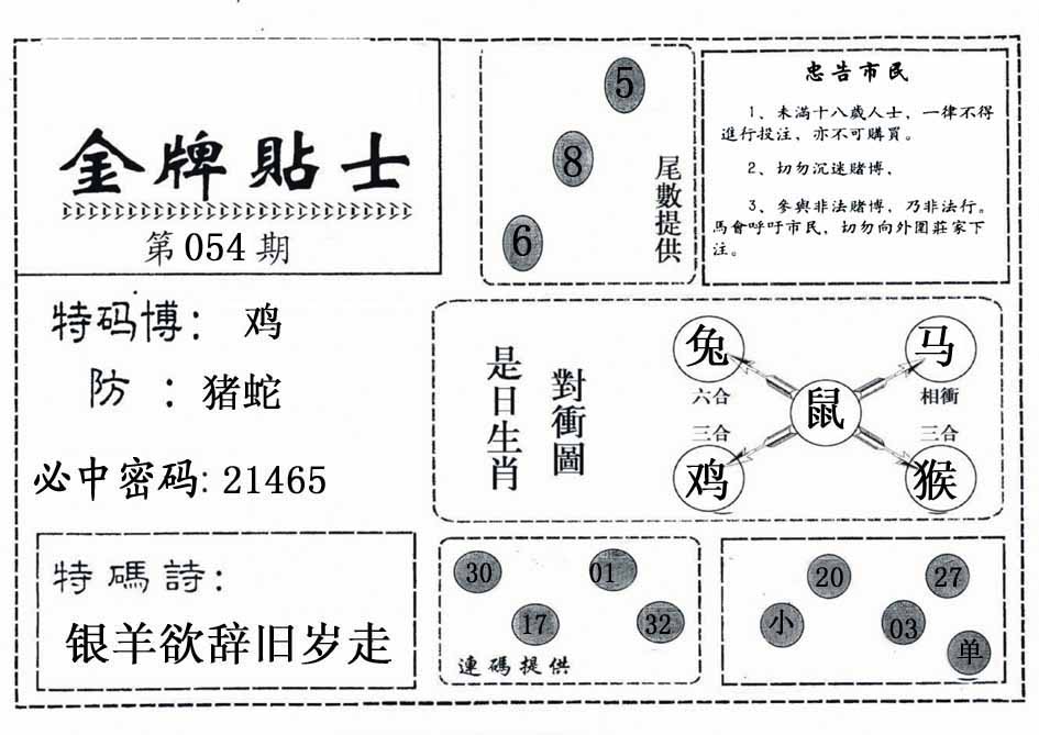 | 054期:③肖 | 鸡羊牛 | 0 |