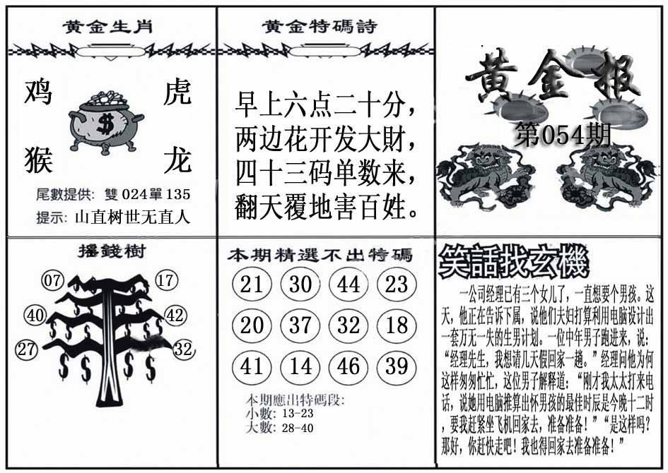 | 052期: 金牛王 【双数+大数】开:猪20准 |