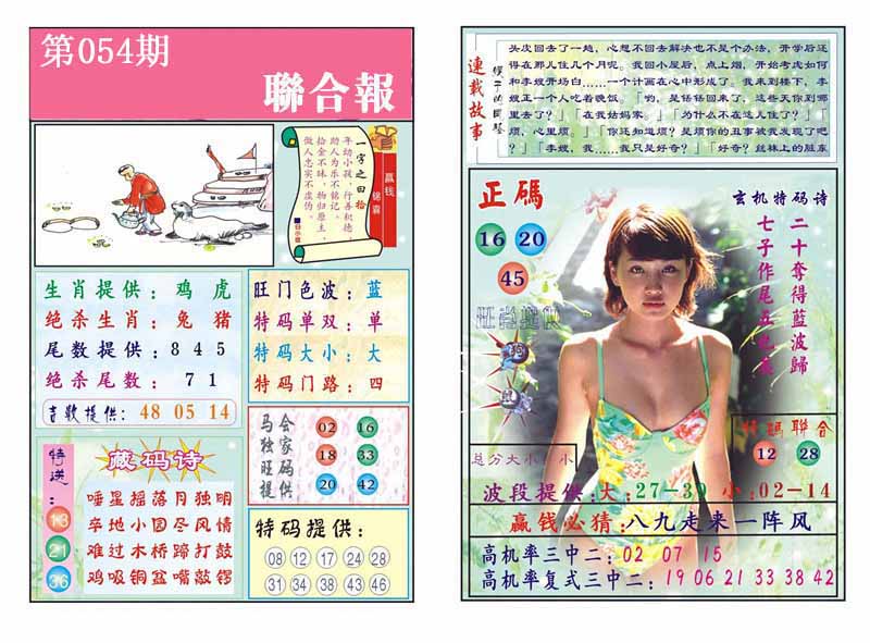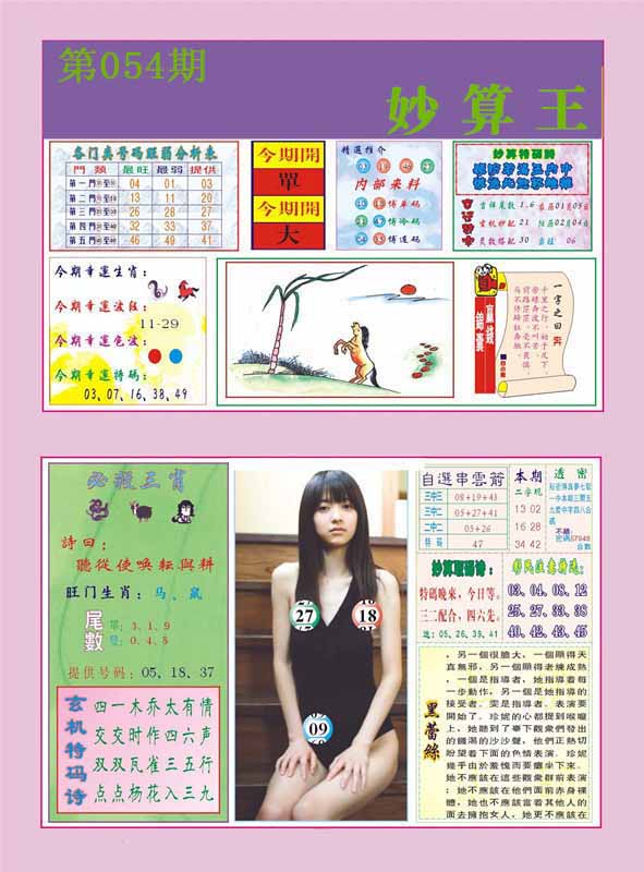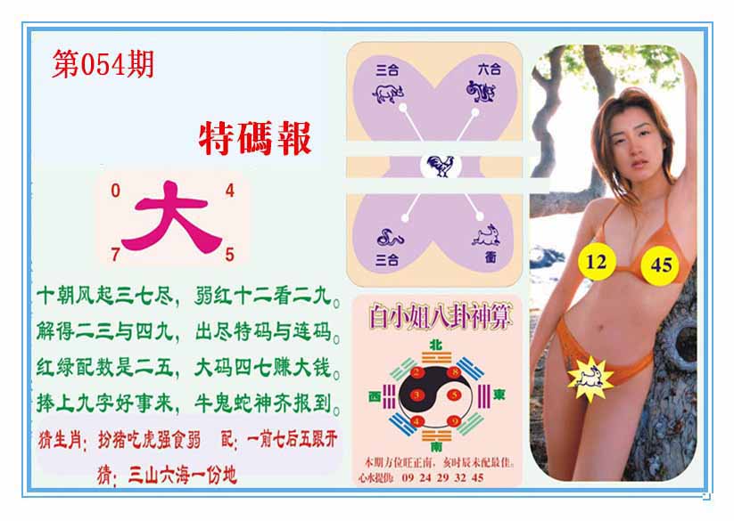 | 054期: 幸运一组三中三→规律①肖①码←7连中 | |