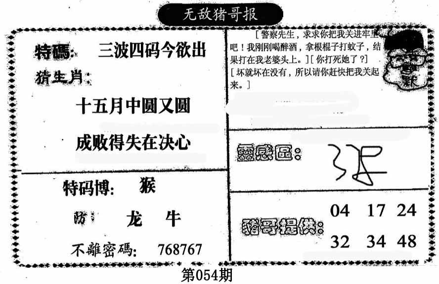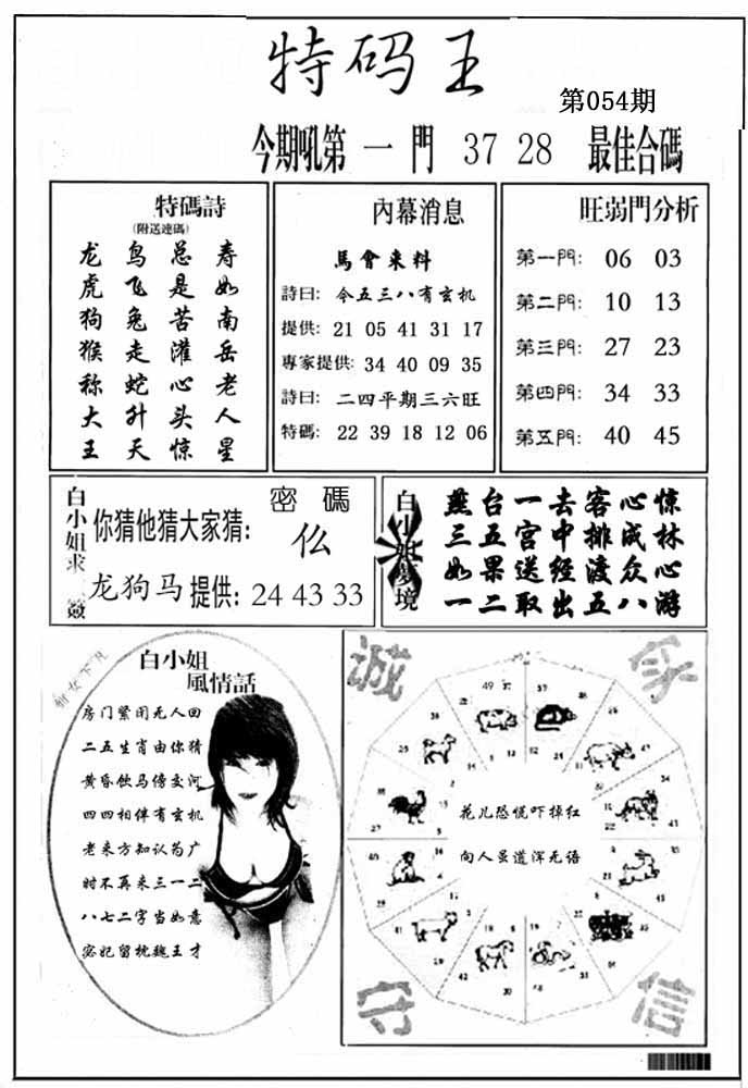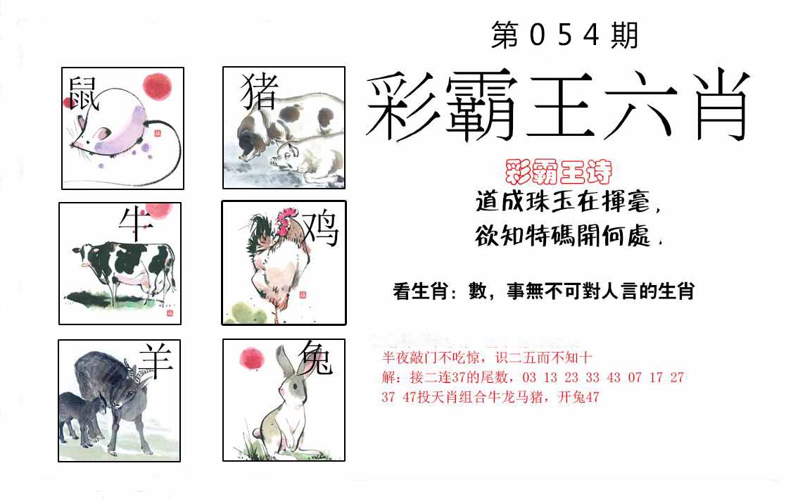 | 054期:⑦肖 | 鸡羊牛龙兔马猪 | 0 |
