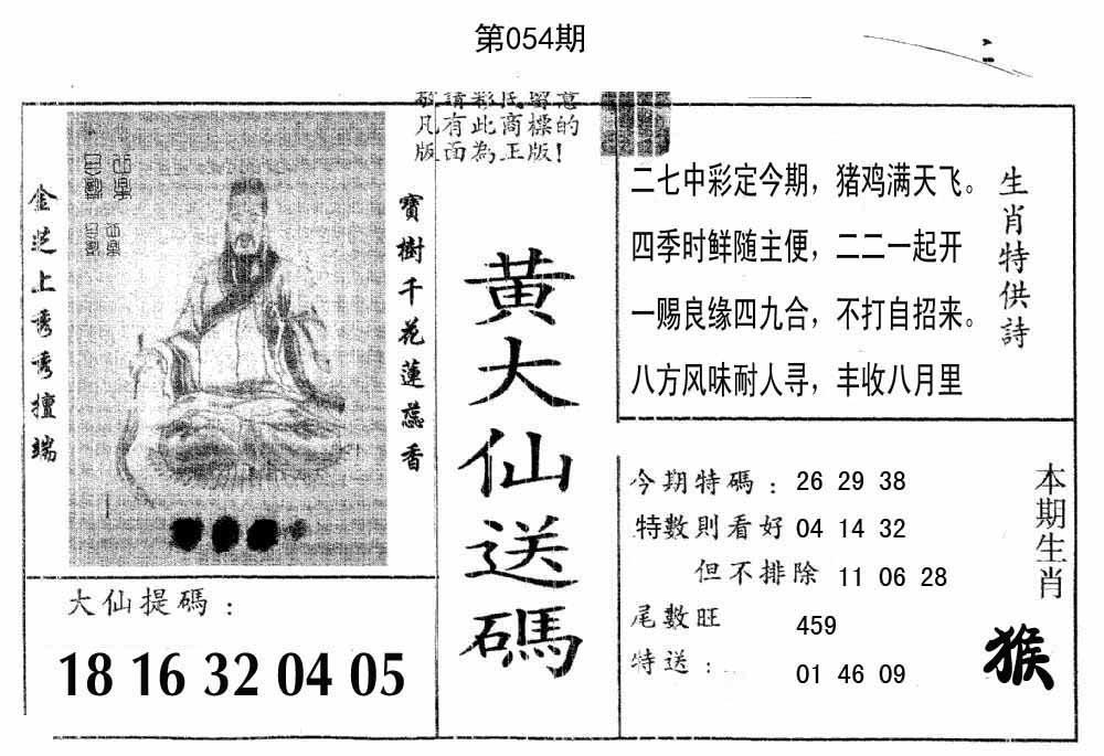 | 045期 :杀26 10 19 04 48 29 32 33 39 41开:猴34 |