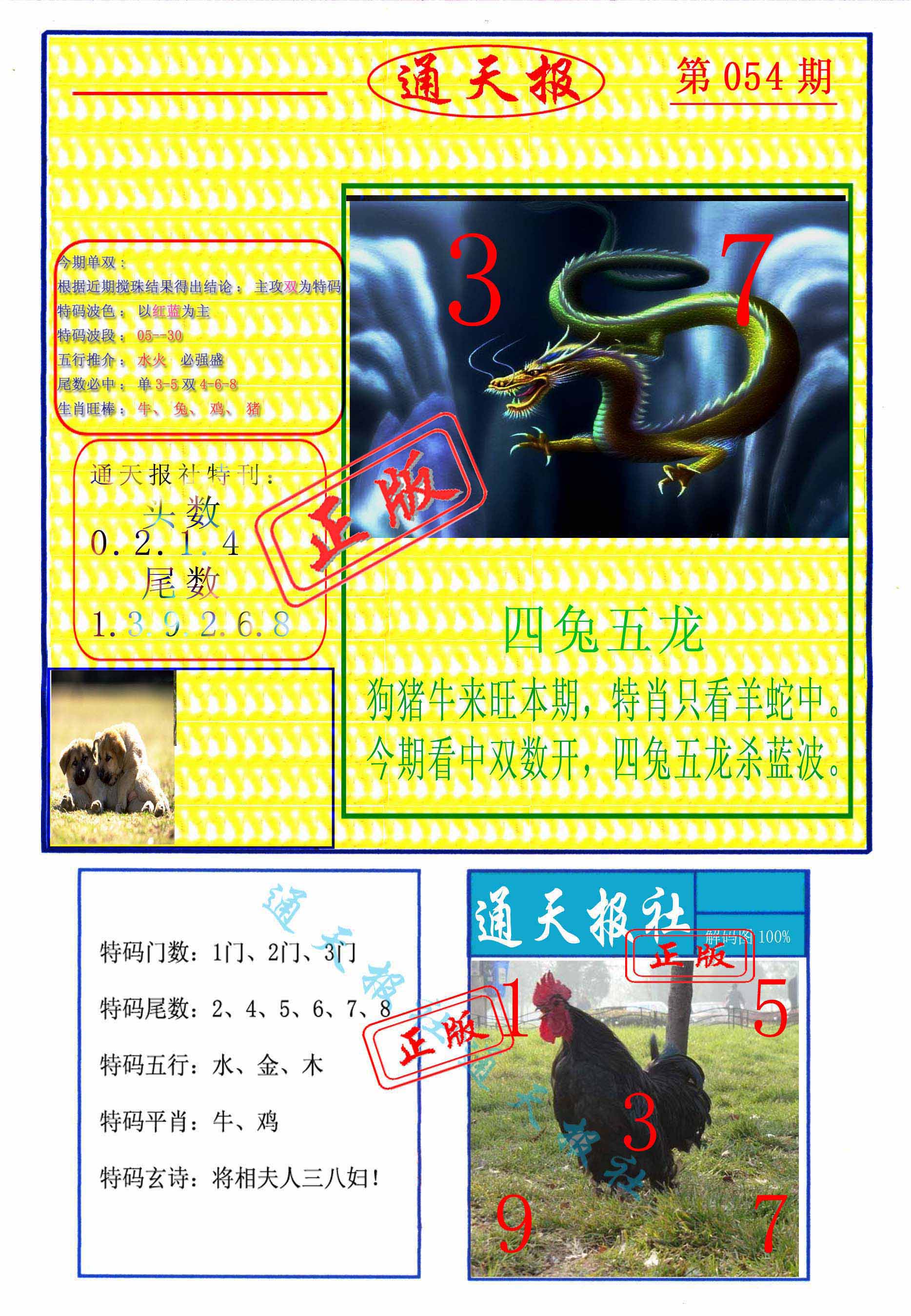 | 047期: 金牛王 【单数+小数】开:狗08准 |