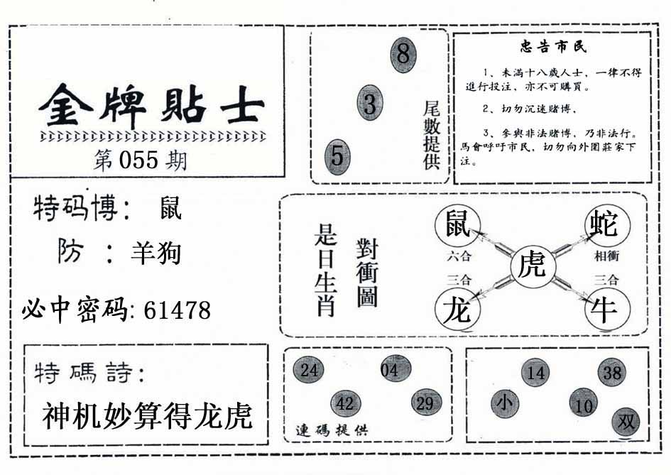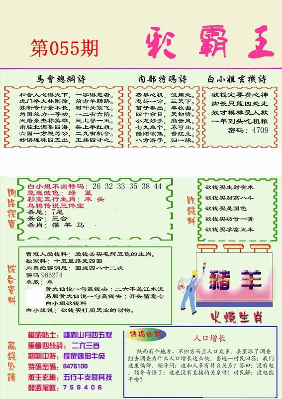 | 055期:⑦肖 | 虎马猪猴兔牛羊 | 0 |