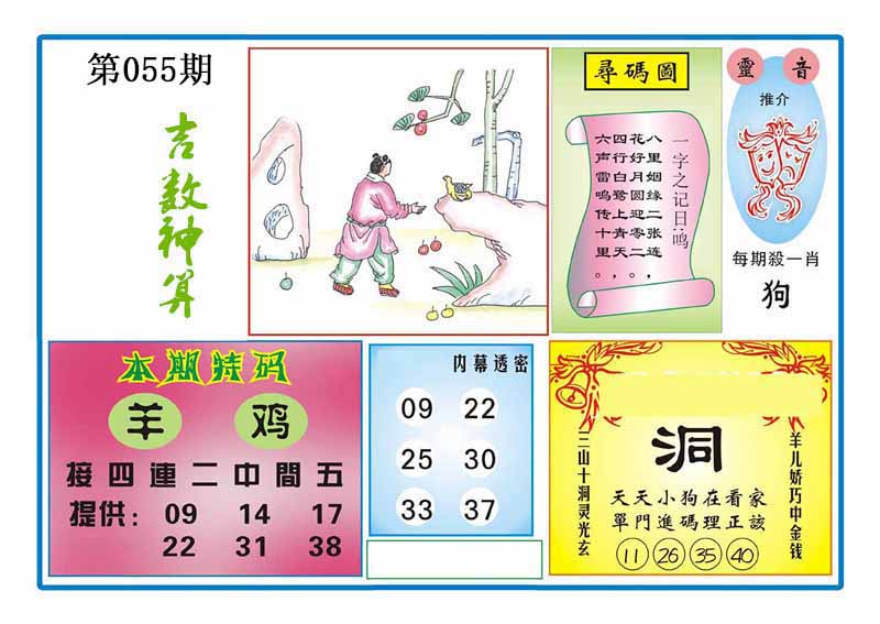 | 054期:⑤肖 | 鸡羊牛龙兔 | 狗21 |
