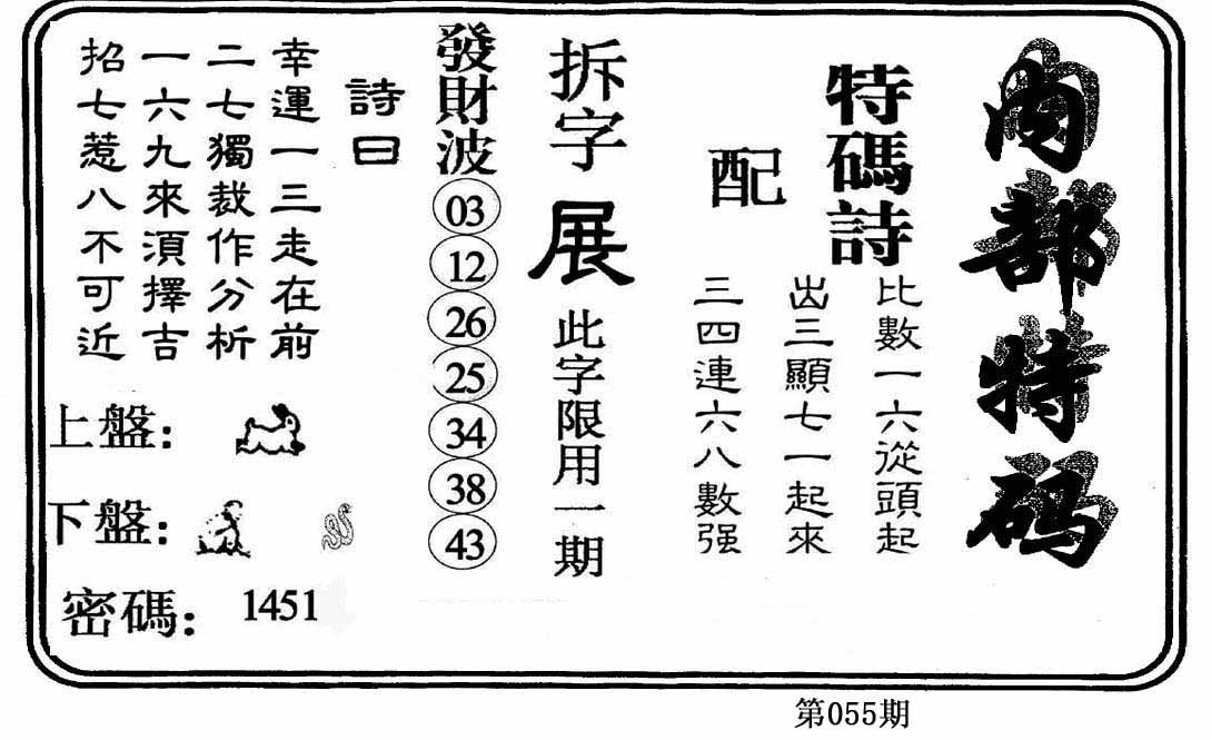| 051期 :平特一尾✰03-13-23-33-43 |