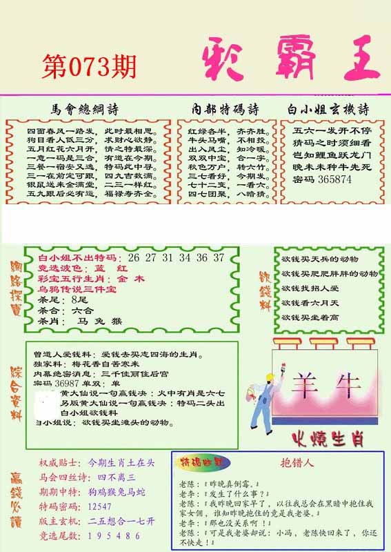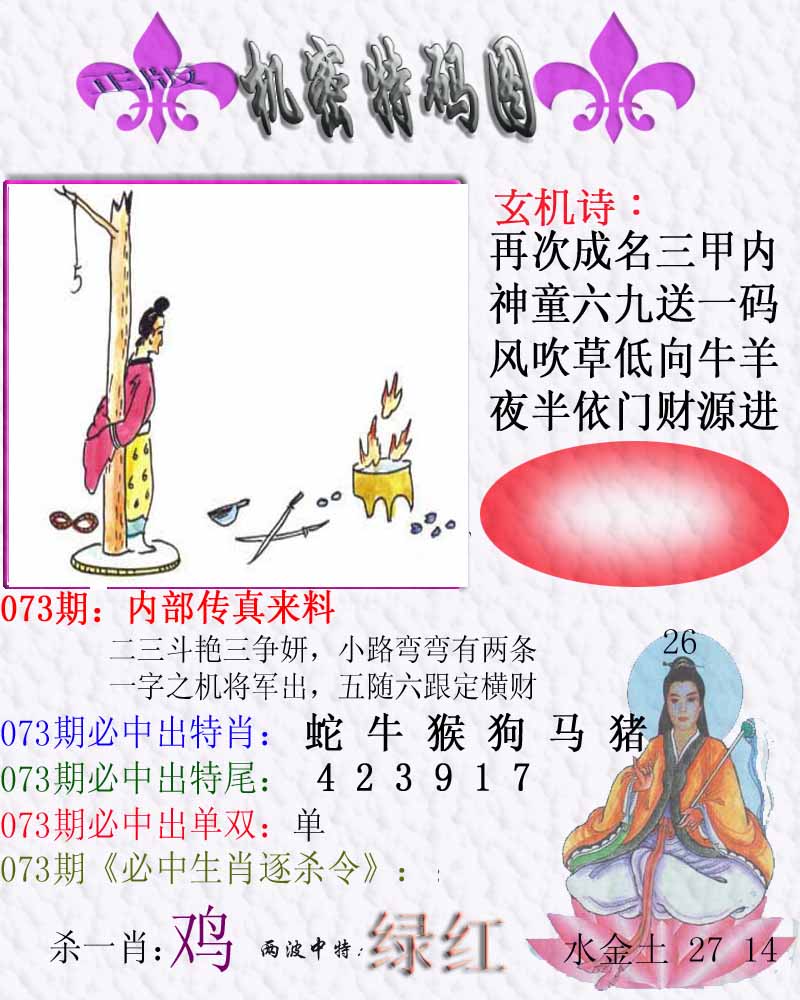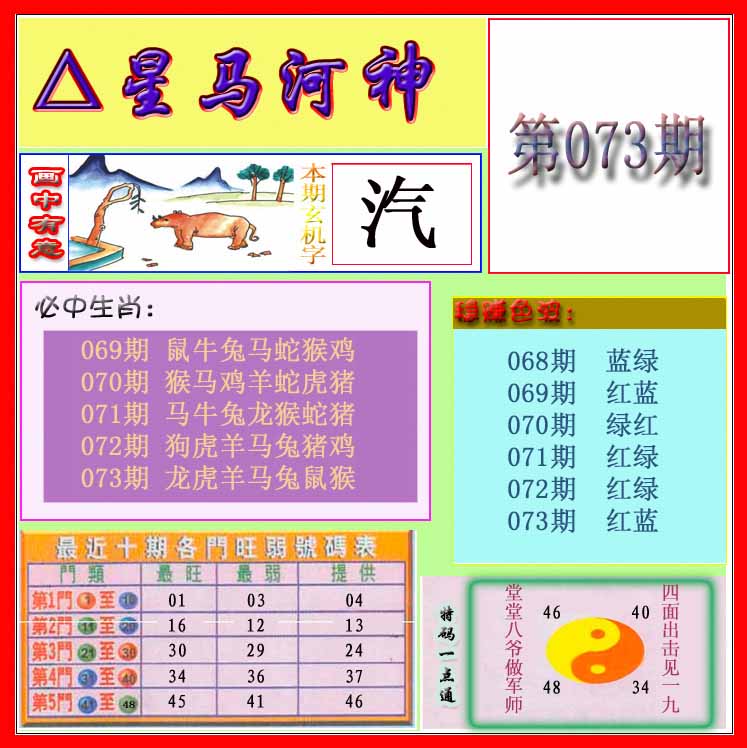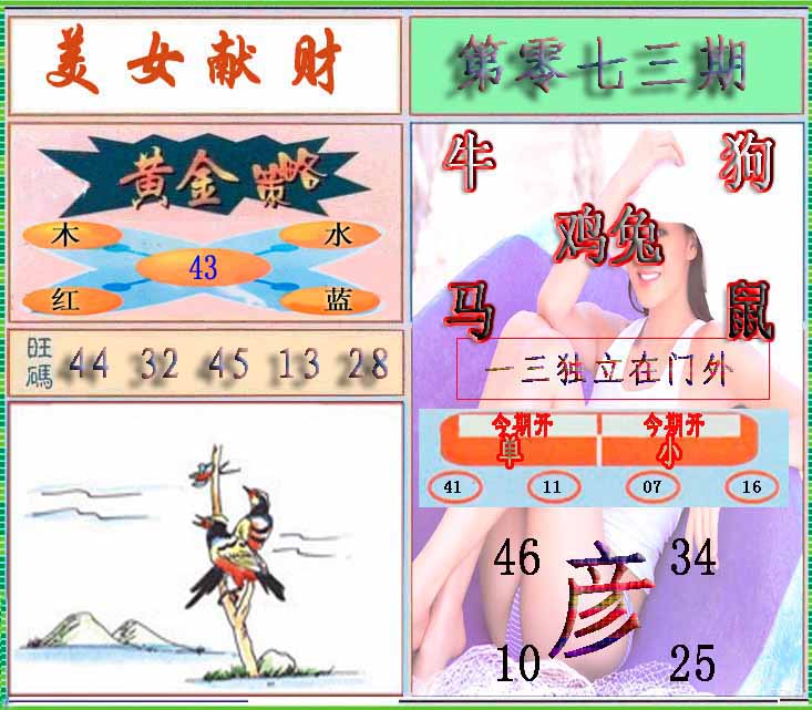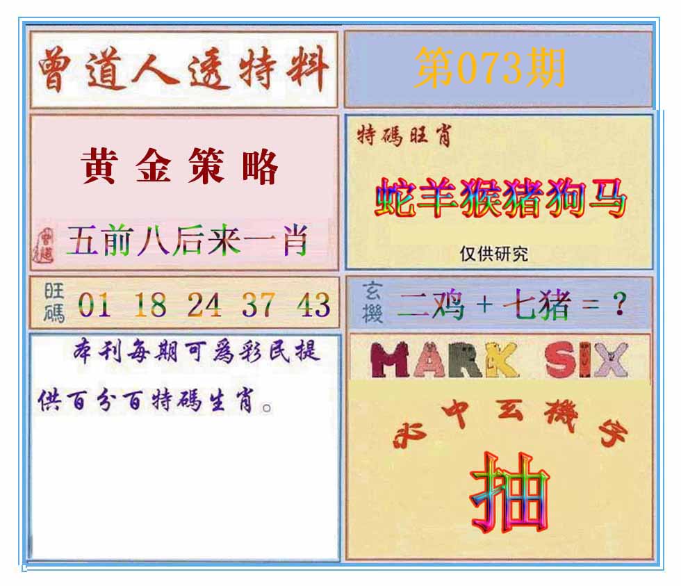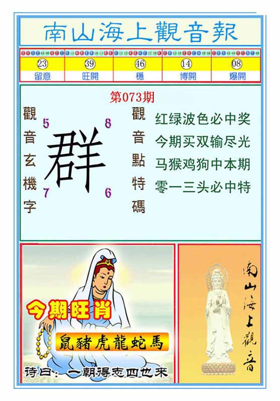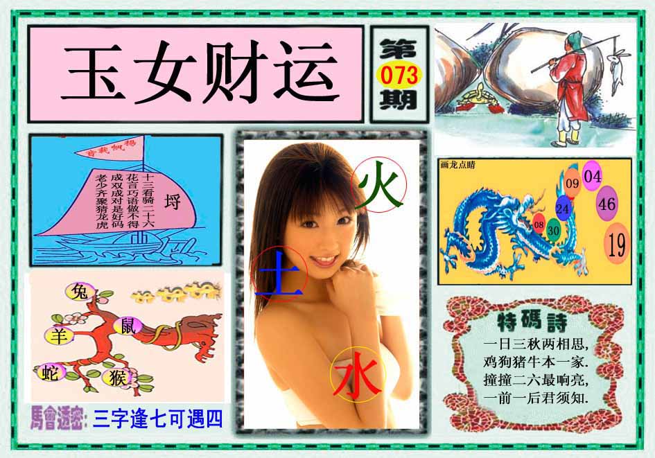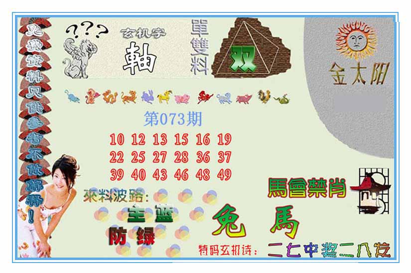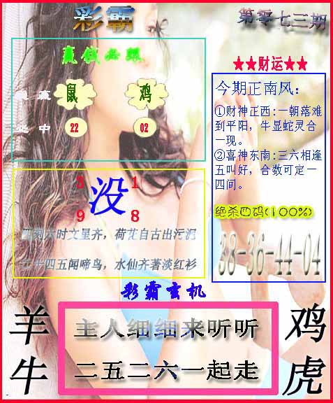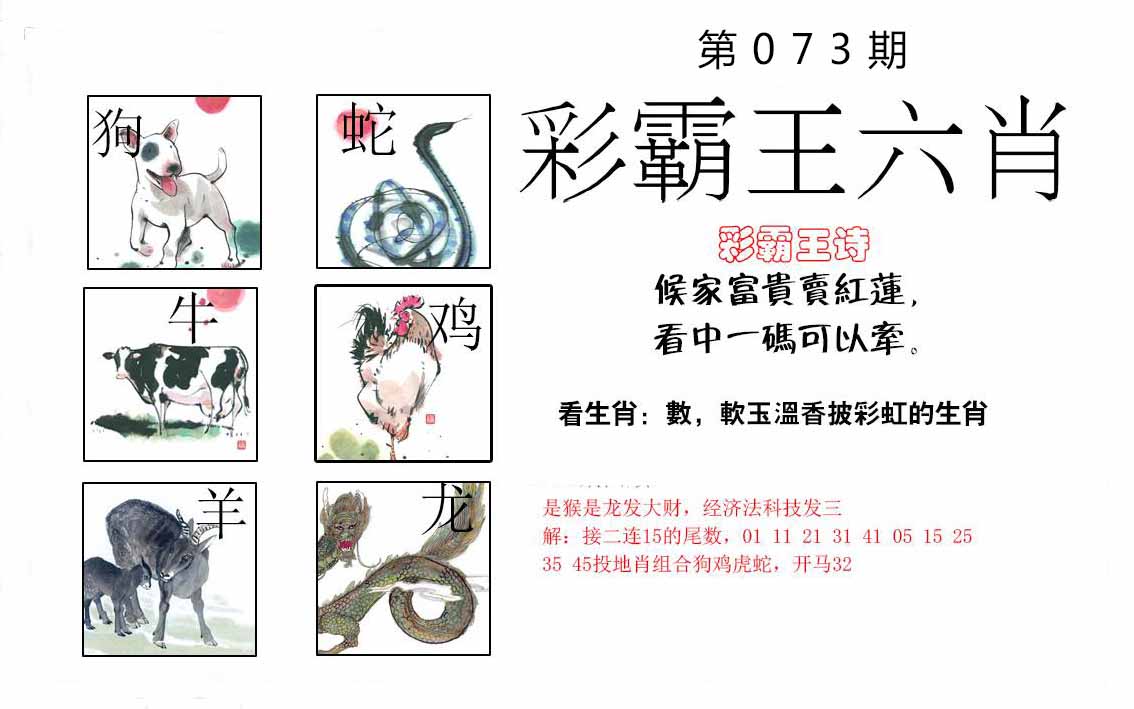 | 073期:⑦肖 | 鸡狗羊猪鼠蛇猴 | 0 |