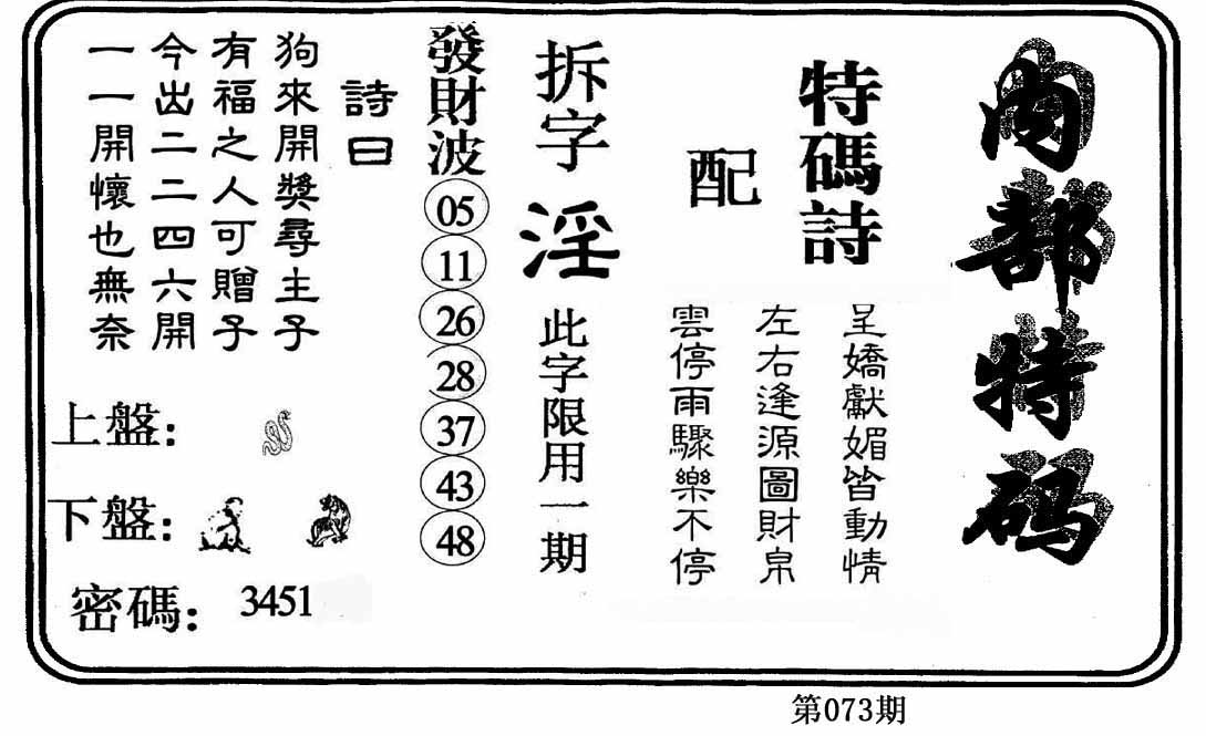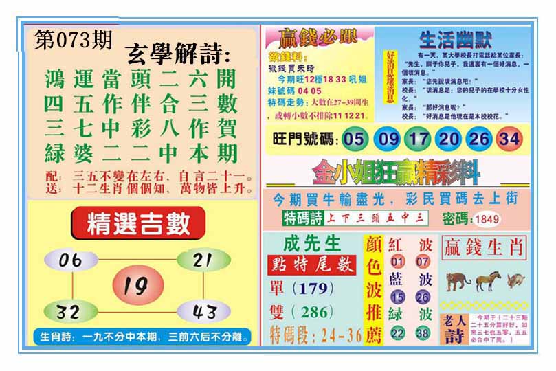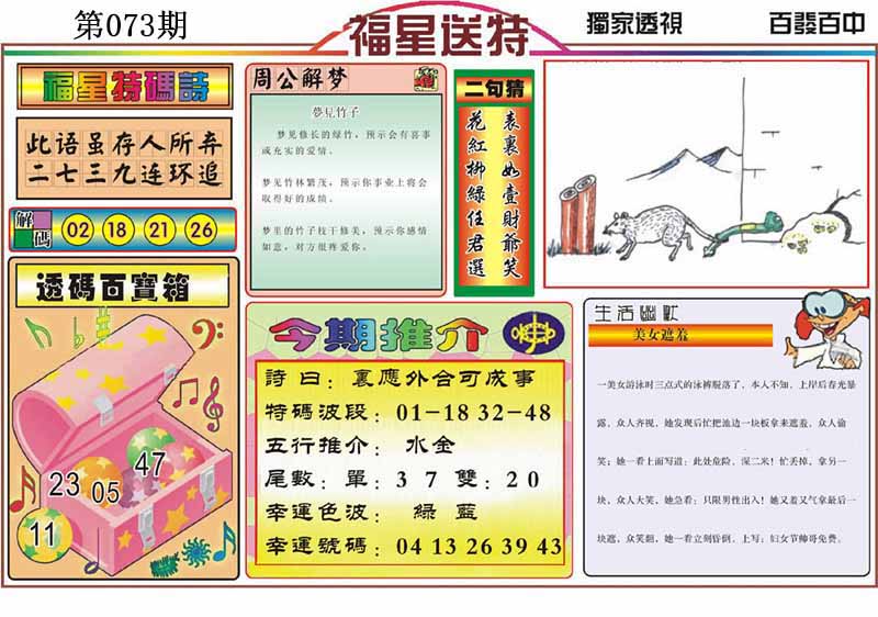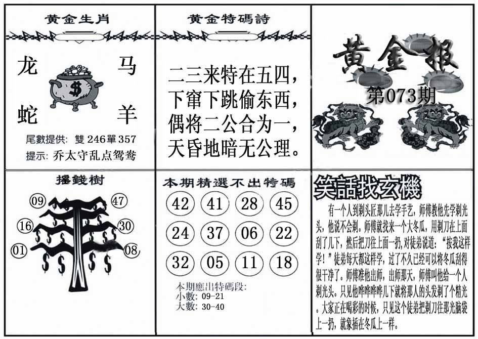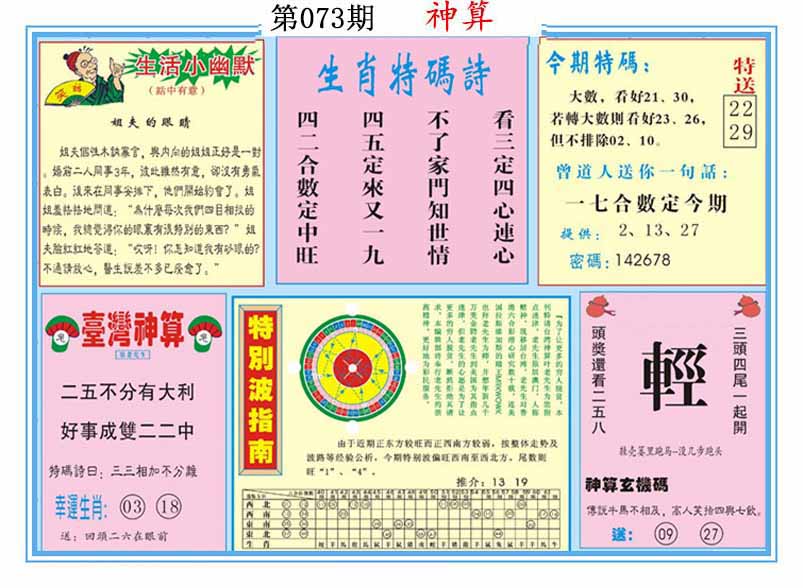 | 073期 :平特一尾✰02-12-22-32-42 |