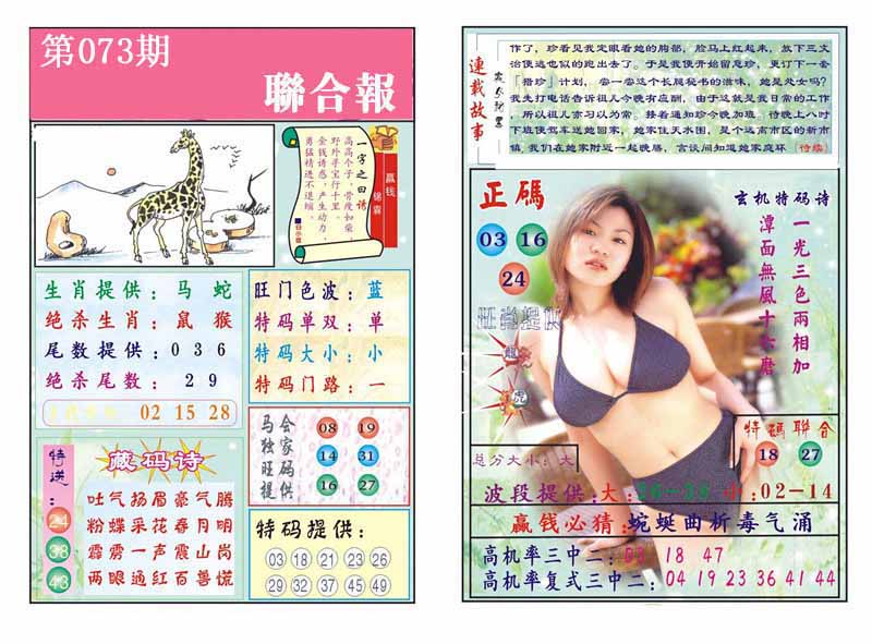 | 073期: 幸运一组三中三→规律①肖①码←7连中 | |
