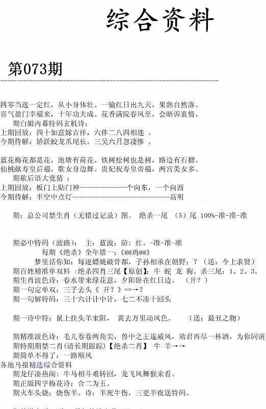 | 073期:【神算子】●平特一肖●专家●二肖中特★ | |