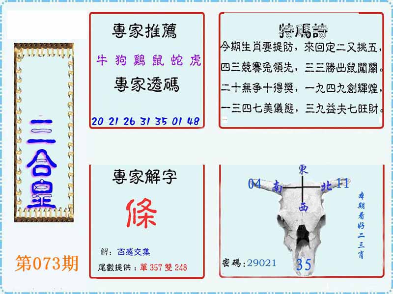 | 072期:②肖 | 牛狗 | 羊24 |