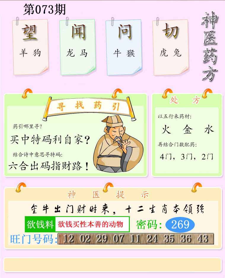 | 072期:⑤肖 | 牛狗羊兔猪 | 羊24 |