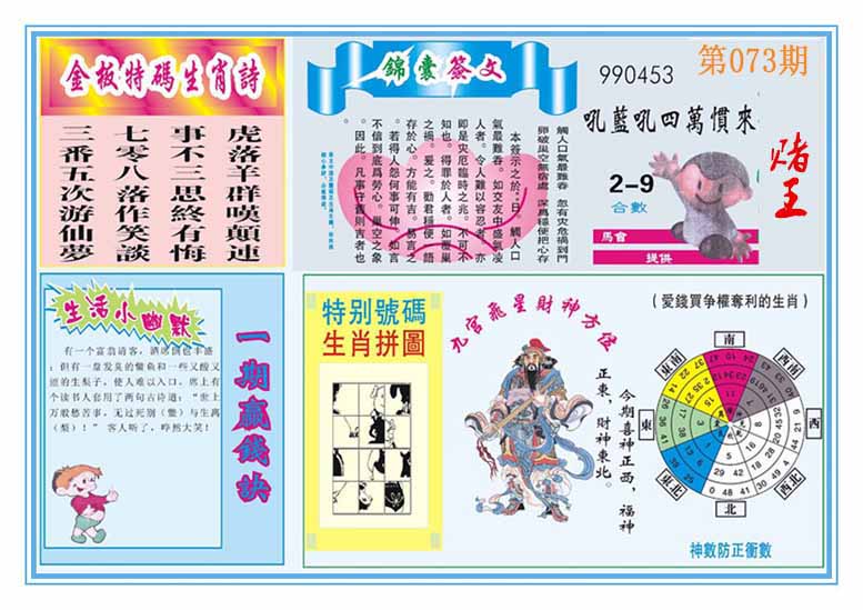 | 073期:⑨肖 | 鸡狗羊猪鼠蛇猴龙马 | 0 |