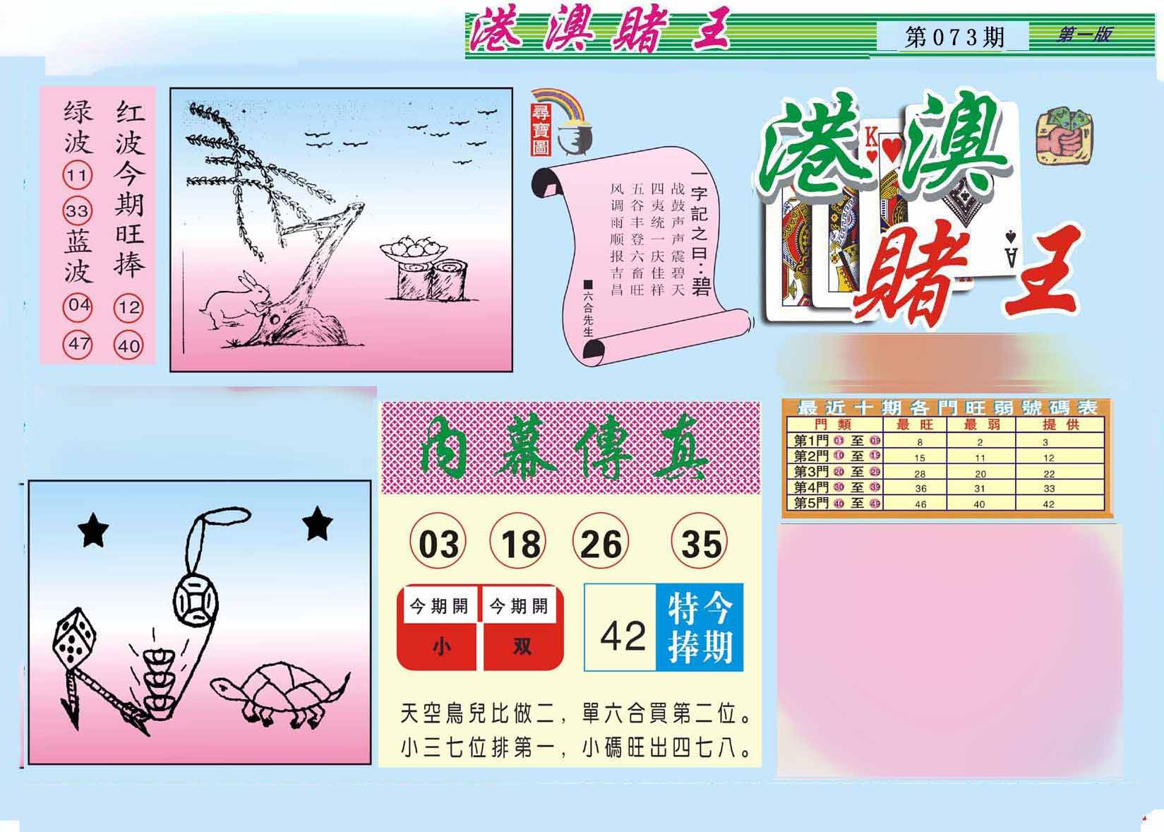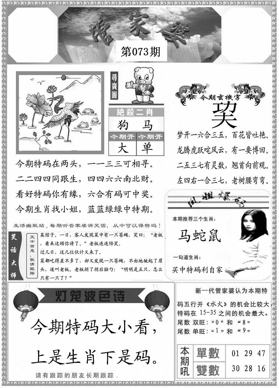 | 073期:【新濠天地】→【灭庄②肖】←值得关注 | |