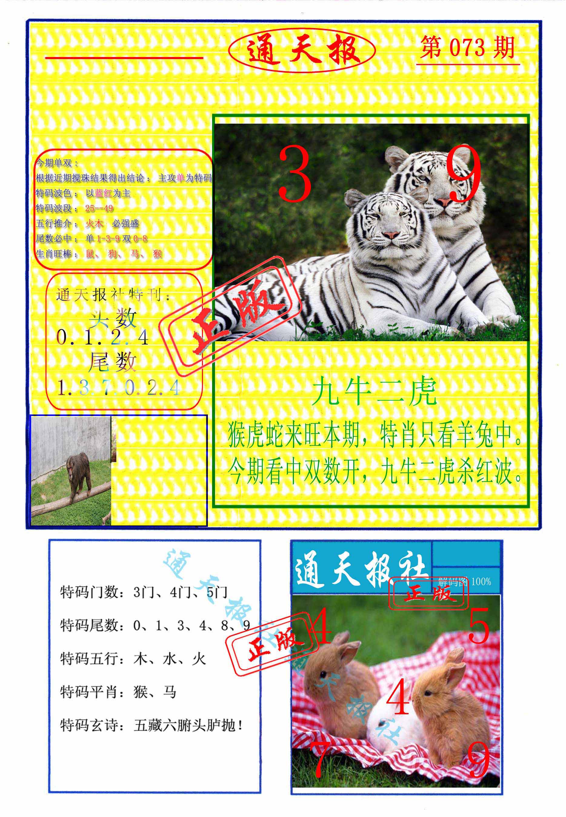 | 059期: 金牛王 【双数+小数】开:兔04准 |