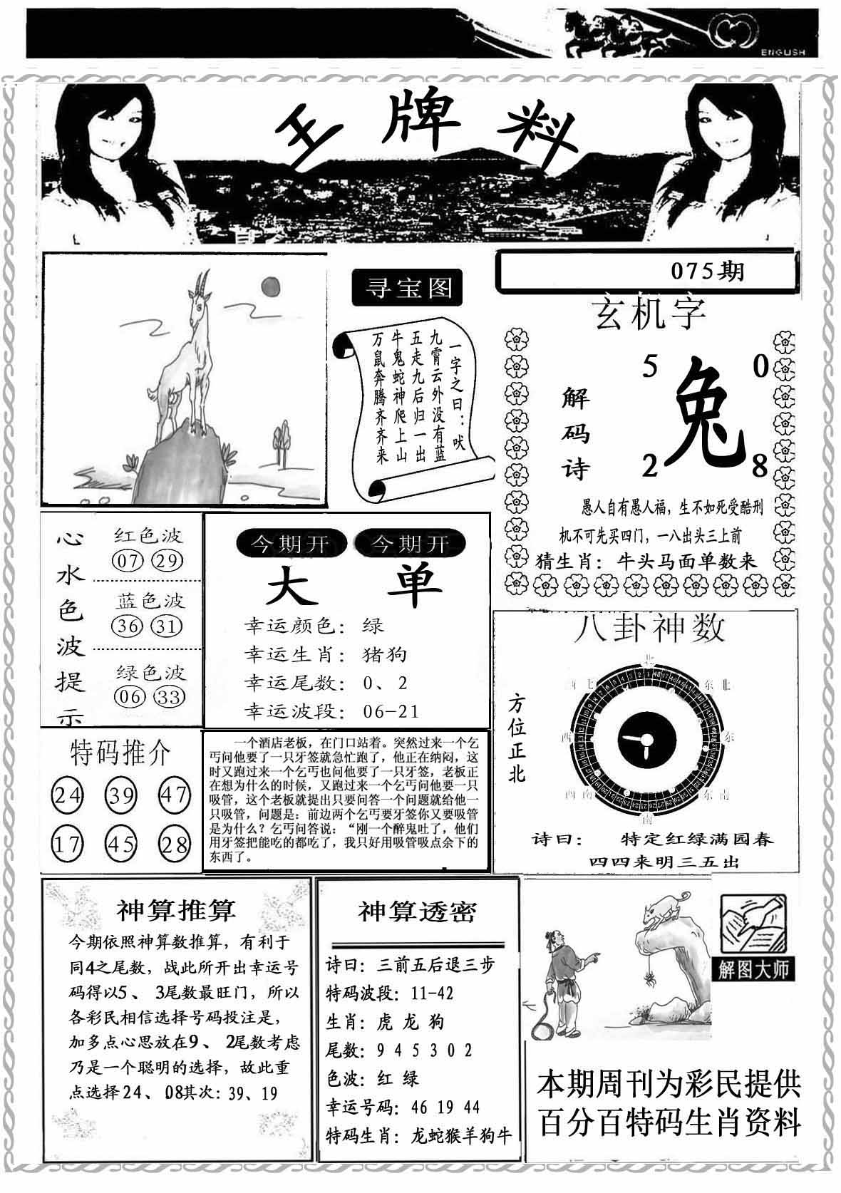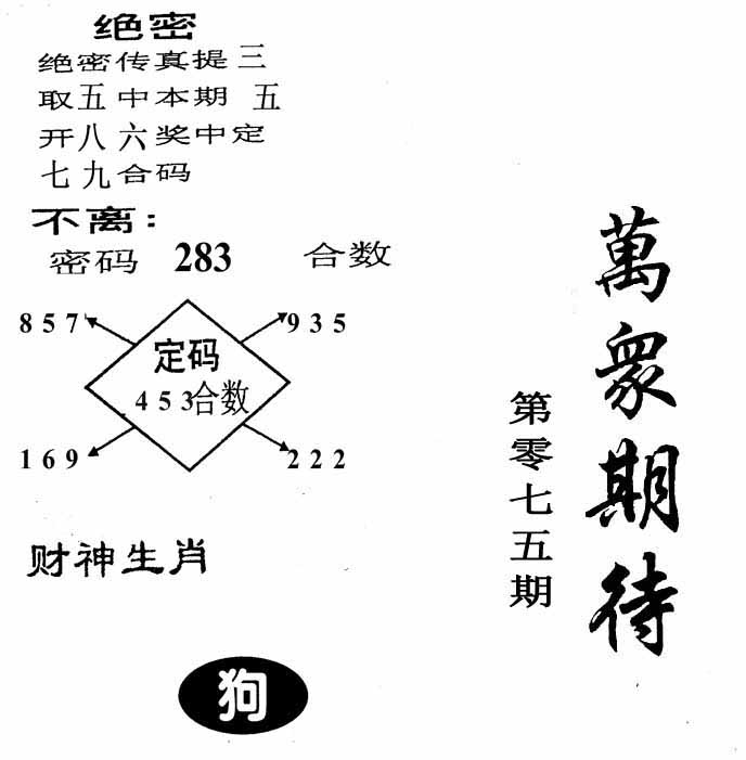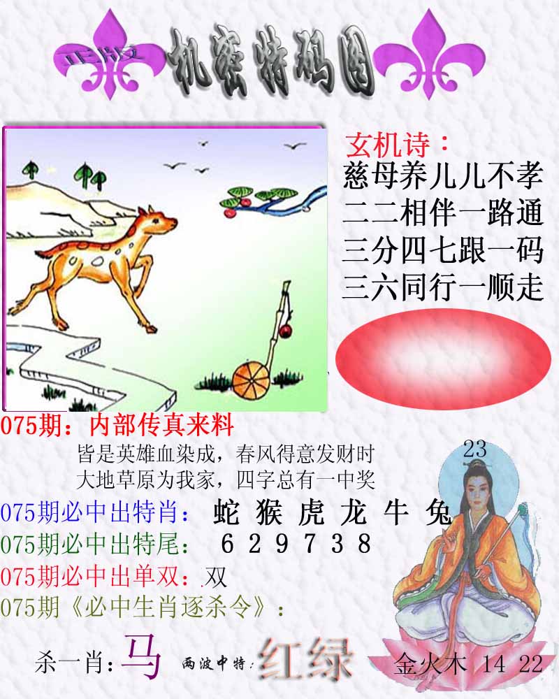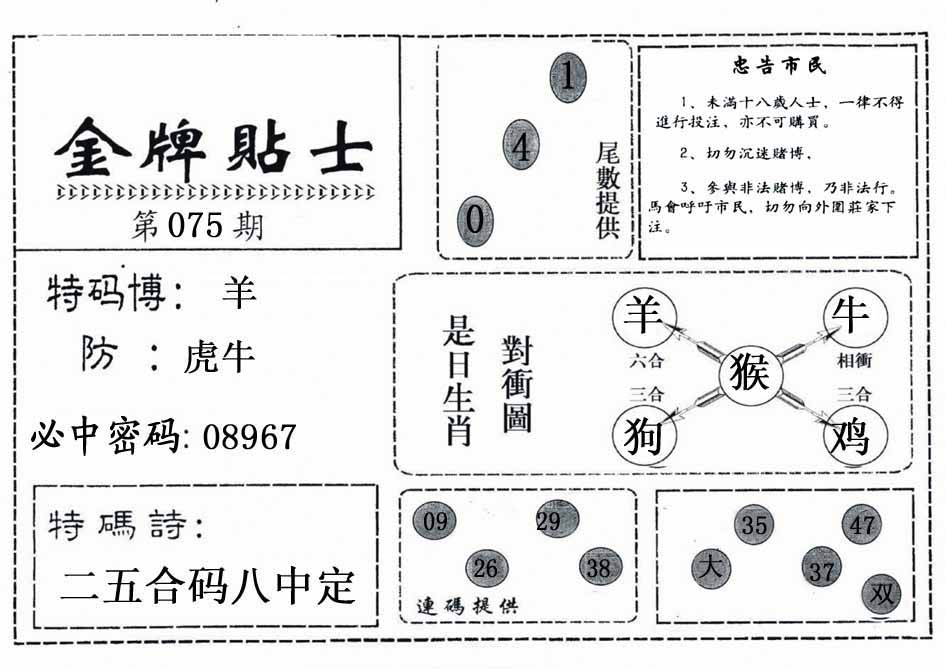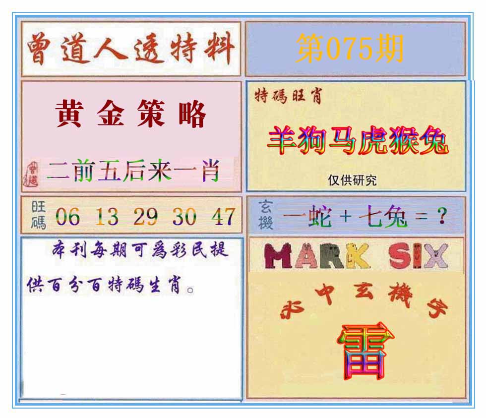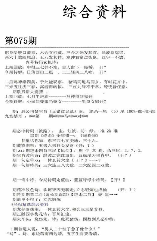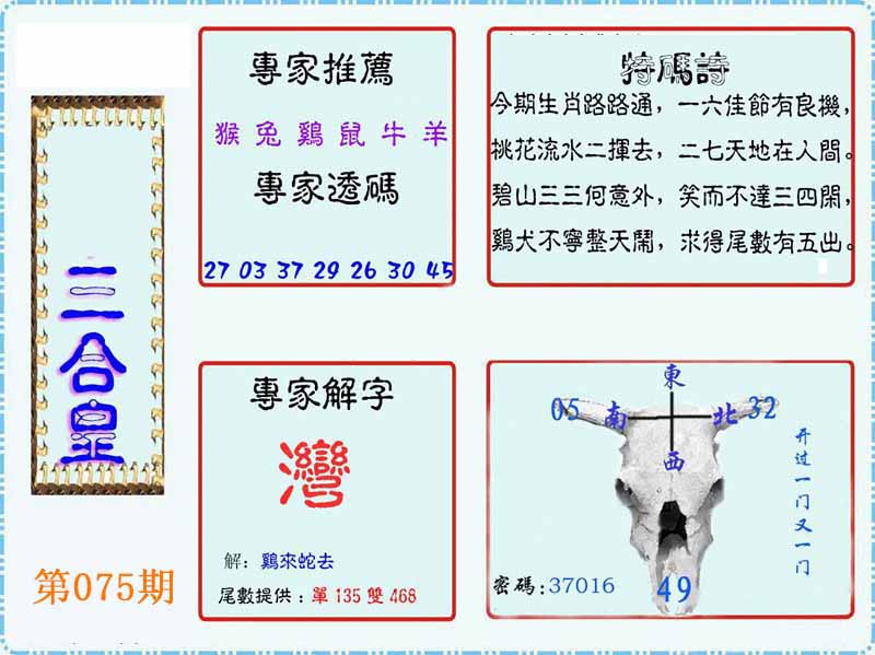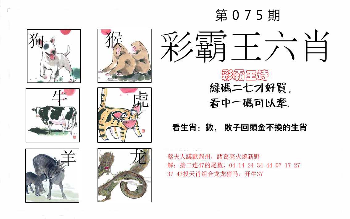 | 075期:⑤肖 | 狗牛羊马蛇 | 0 |