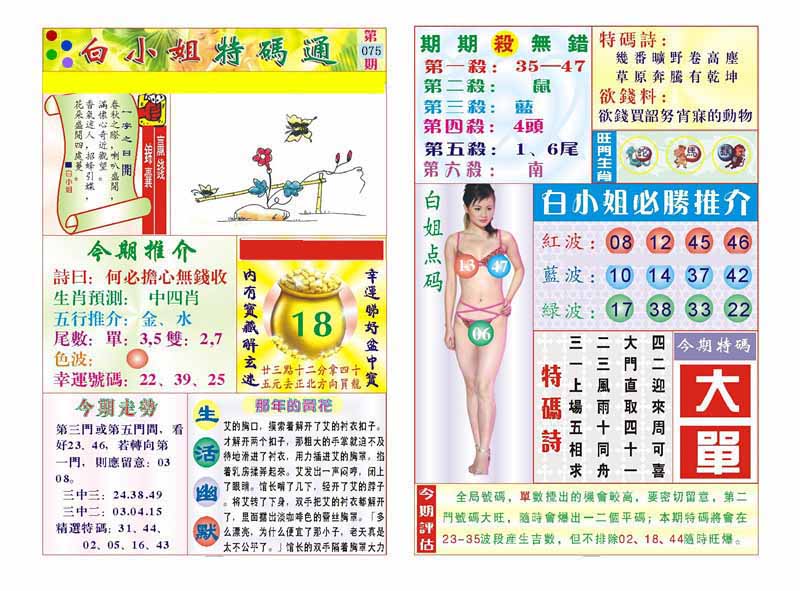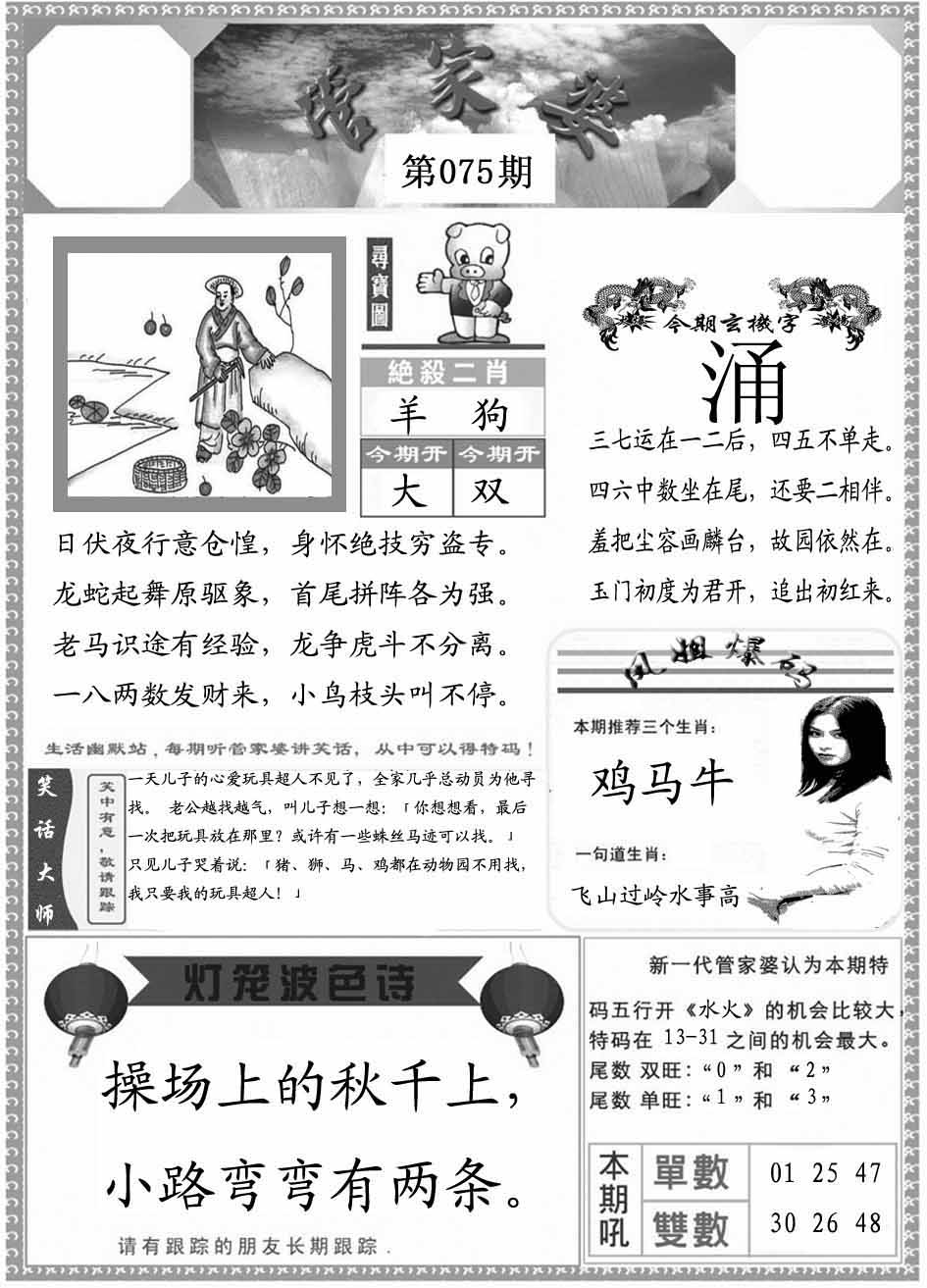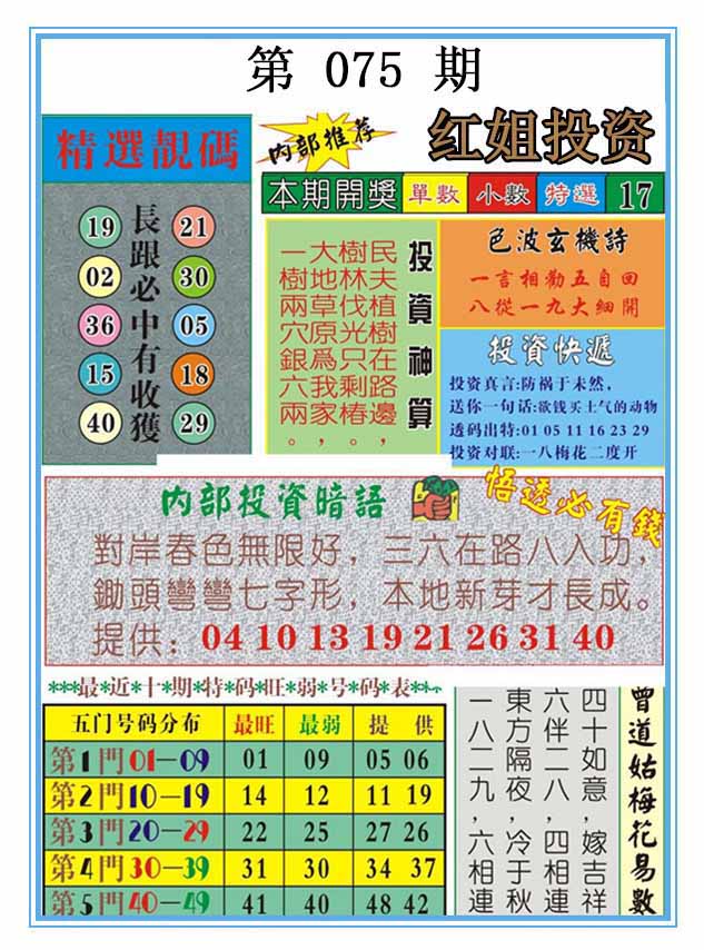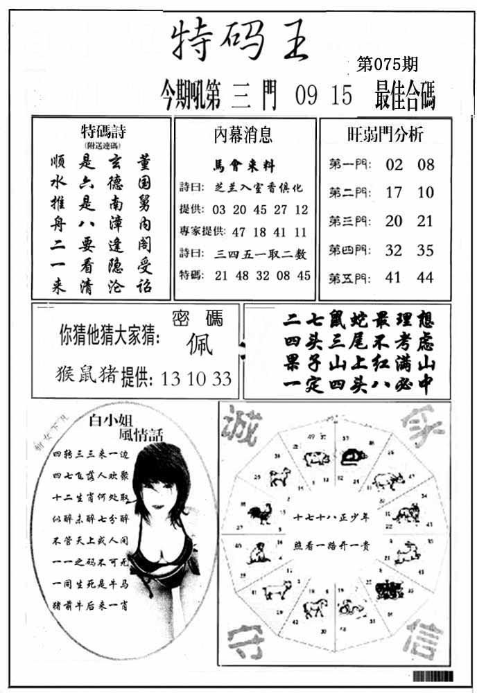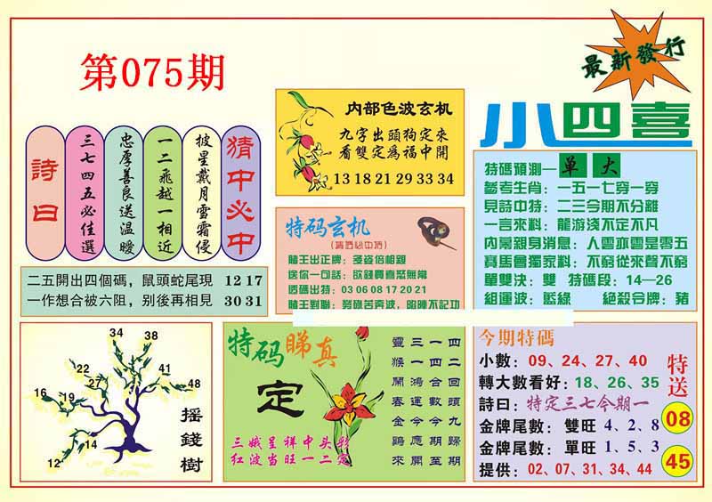 | 075期 :平特一尾✰08-18-28-38-48 |