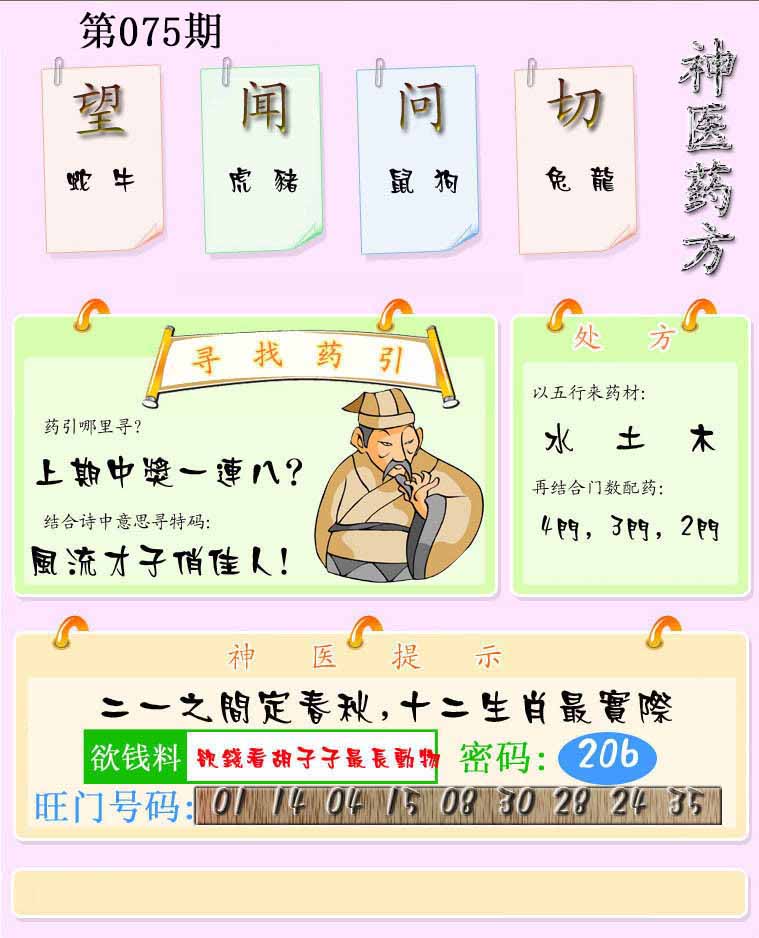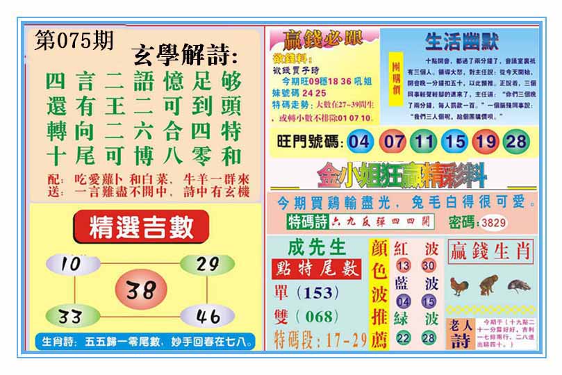 | 074期:⑤肖 | 蛇羊鼠兔牛 | 牛18 |