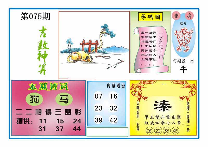 | 075期:⑦肖 | 狗牛羊马蛇猪龙 | 0 |