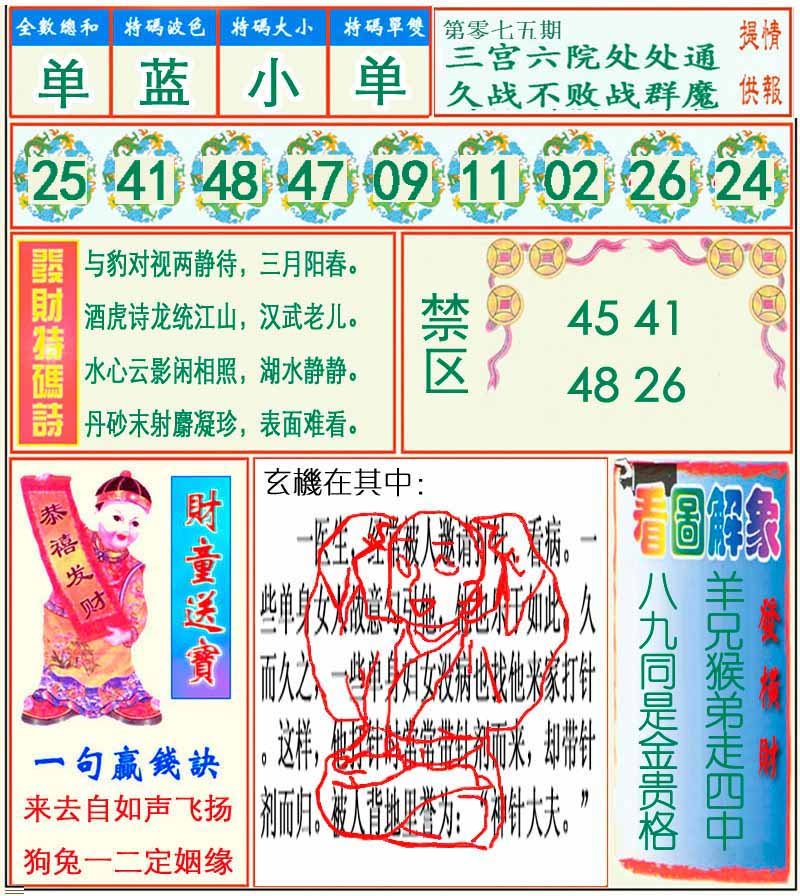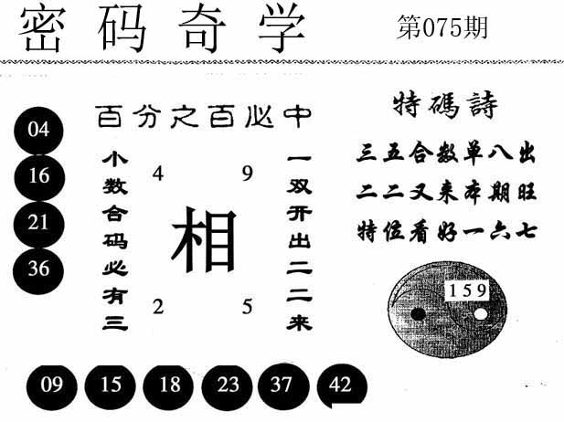 | 075期: 幸运一组三中三→规律①肖①码←7连中 | |
