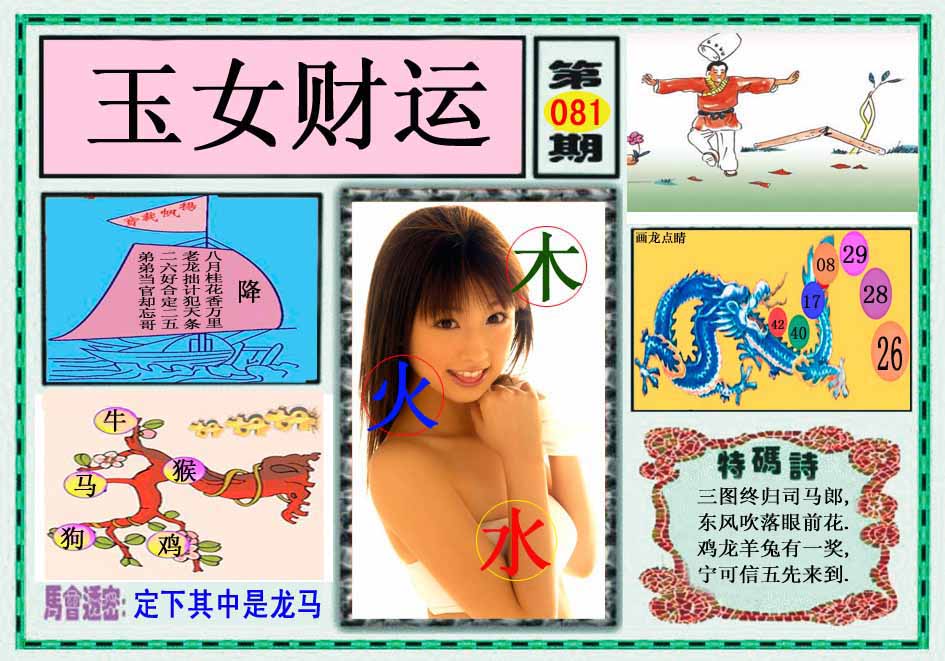 | 081期: 幸运一组三中三→规律①肖①码←7连中 | |
