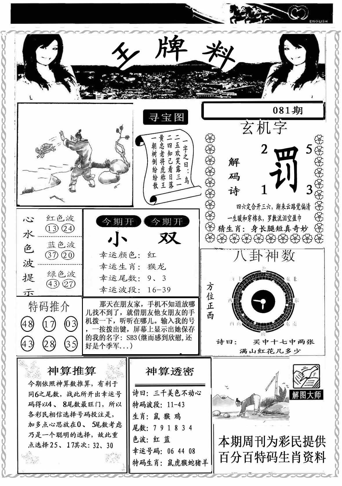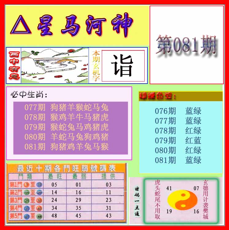 | 078期:⑤肖 | 鸡蛇马狗鼠 | 羊48 |