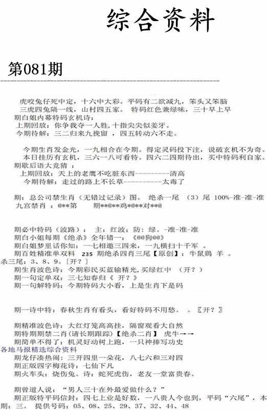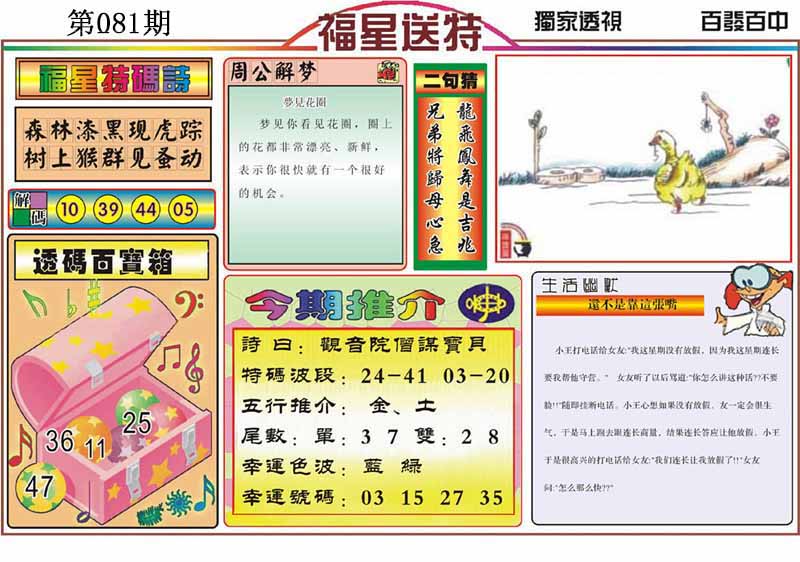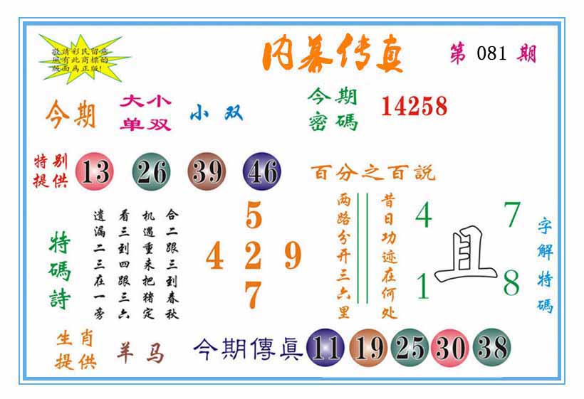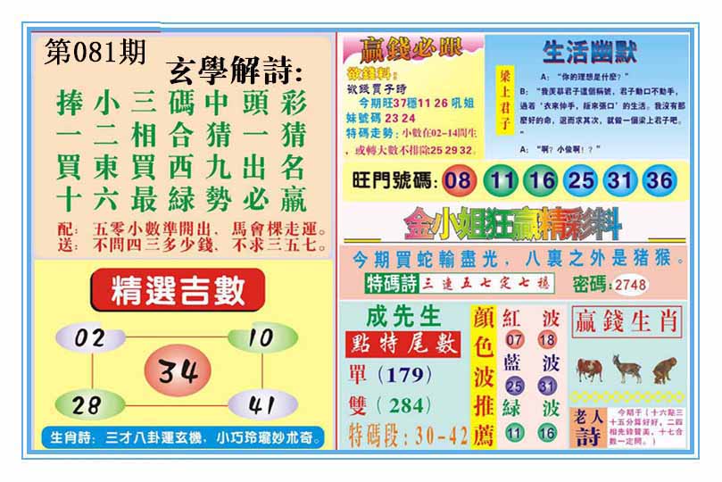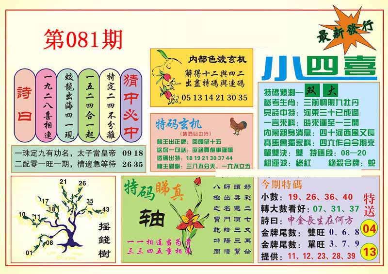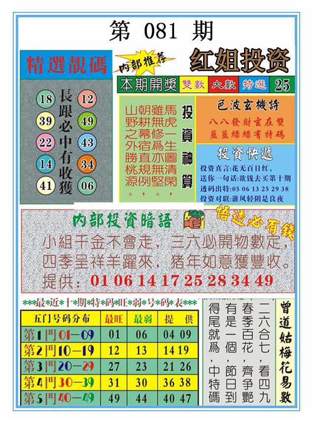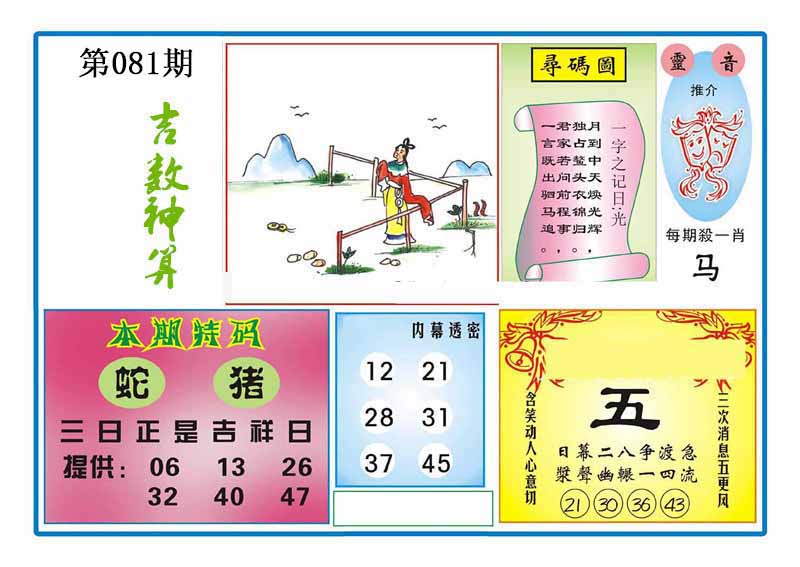 | 081期 :平特一尾✰01-11-21-31-41 |