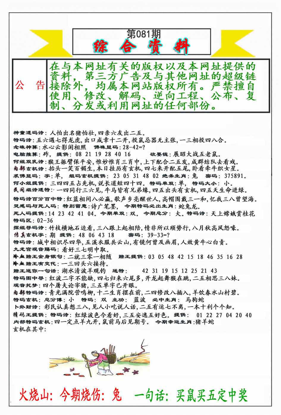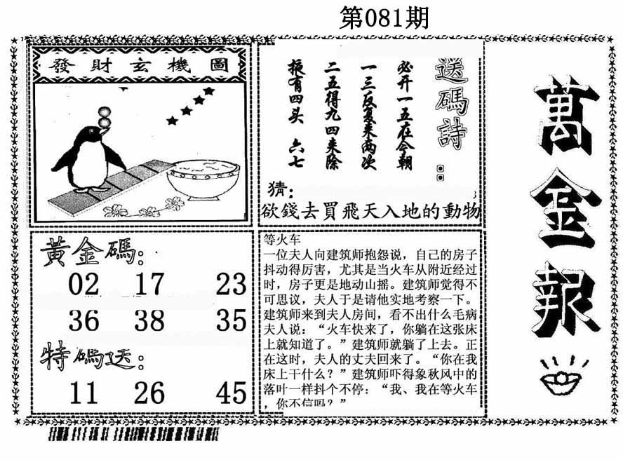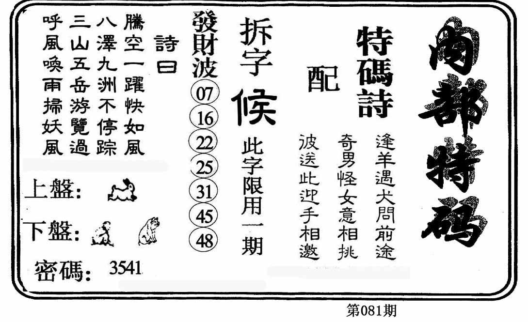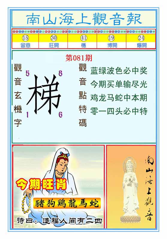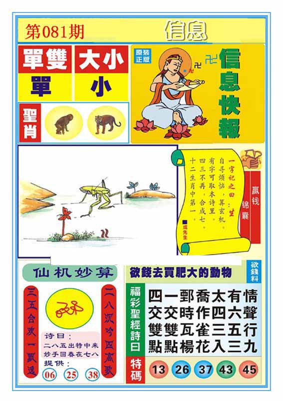 | 081期 :平特一尾✰01-11-21-31-41 |
