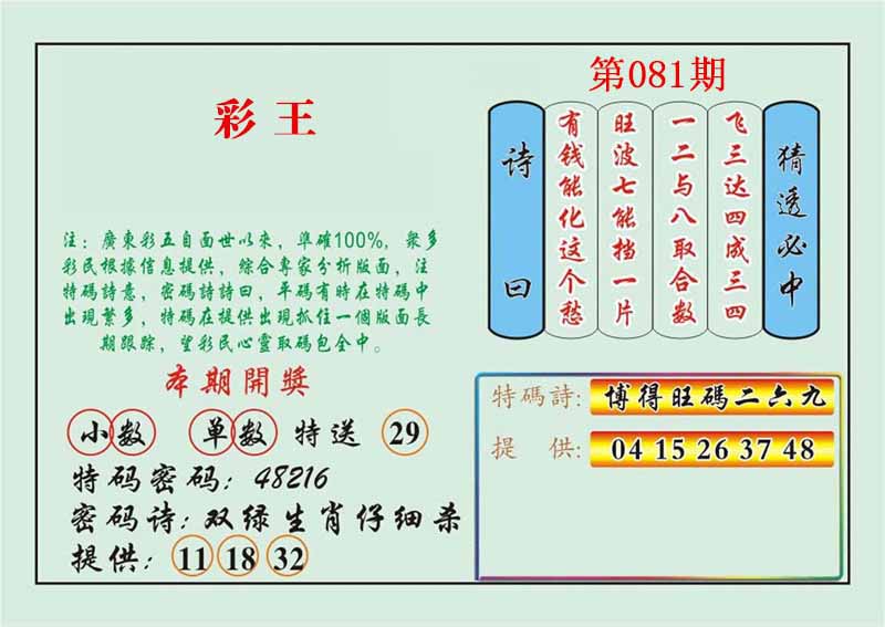 | 080期: 金牛王 【双数+小数】开:羊36准 |