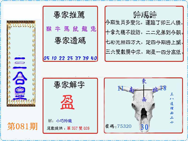 | 081期:②肖 | 牛猴 | 0 |