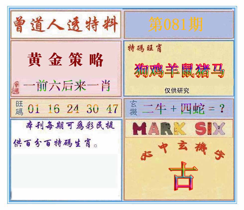 | 081期:⑦肖 | 牛猴羊龙虎蛇猪 | 0 |