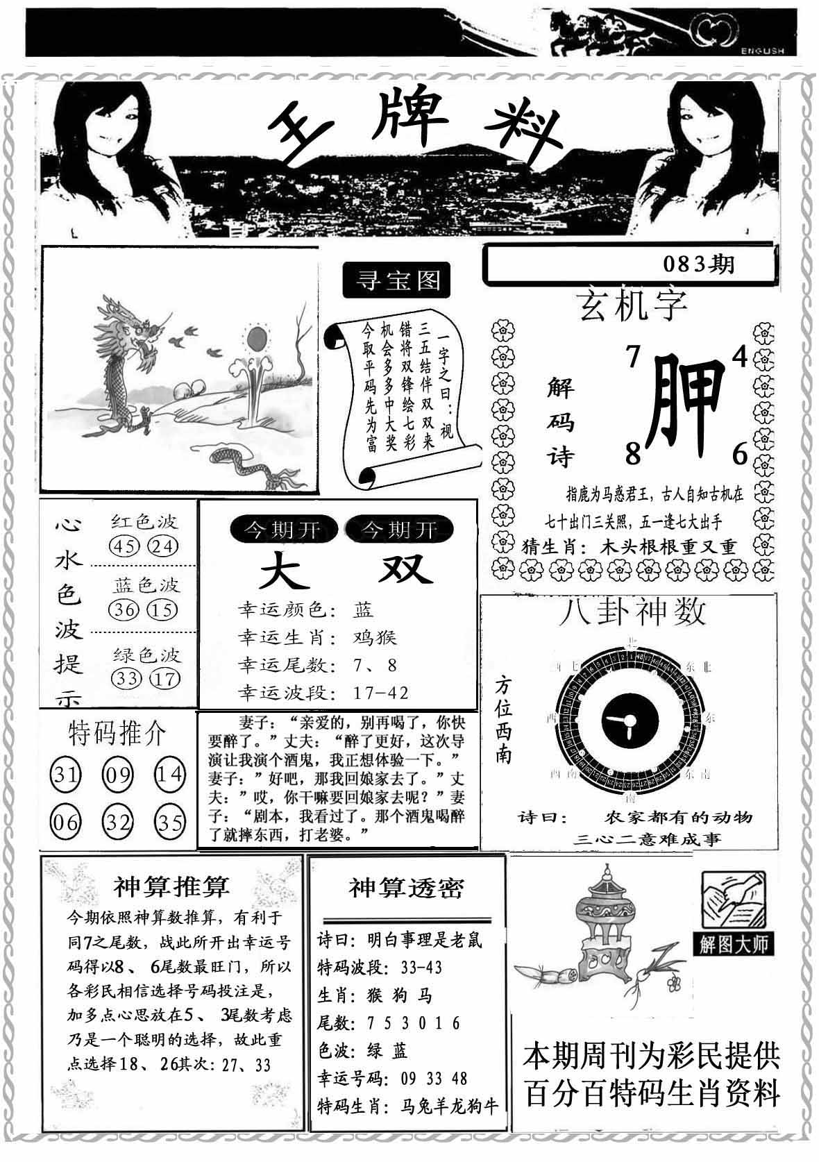 | 083期:【新濠天地】→【灭庄②肖】←值得关注 | |