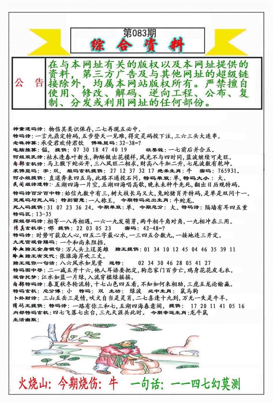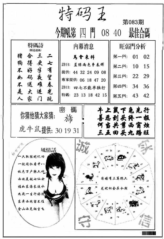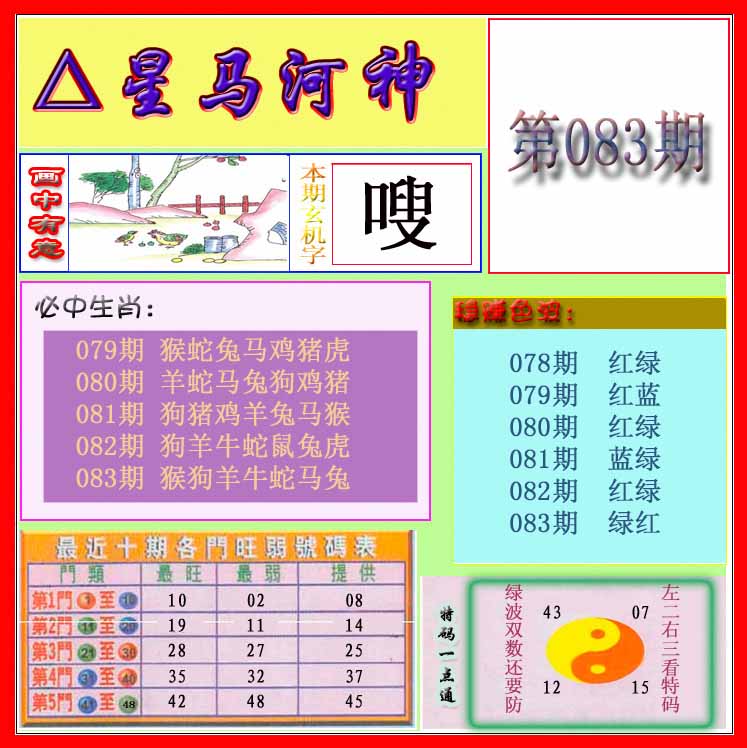 | 083期:⑦肖 | 马羊虎猴狗鼠牛 | 0 |