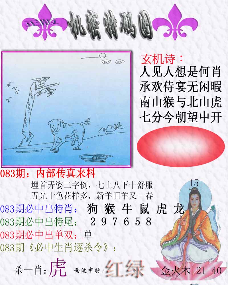 | 082期:⑤肖 | 虎蛇鼠龙狗 | 鸡34 |
