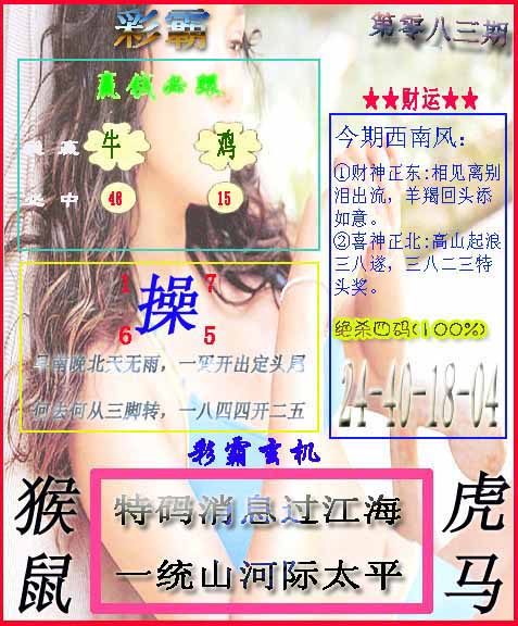 | 083期: 香港九点半→【⒉肖主④码】←机不可失 | |