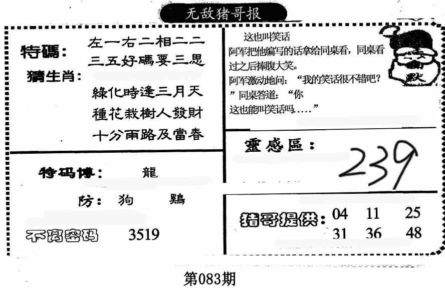 | 083期:③肖 | 马羊虎 | 0 |