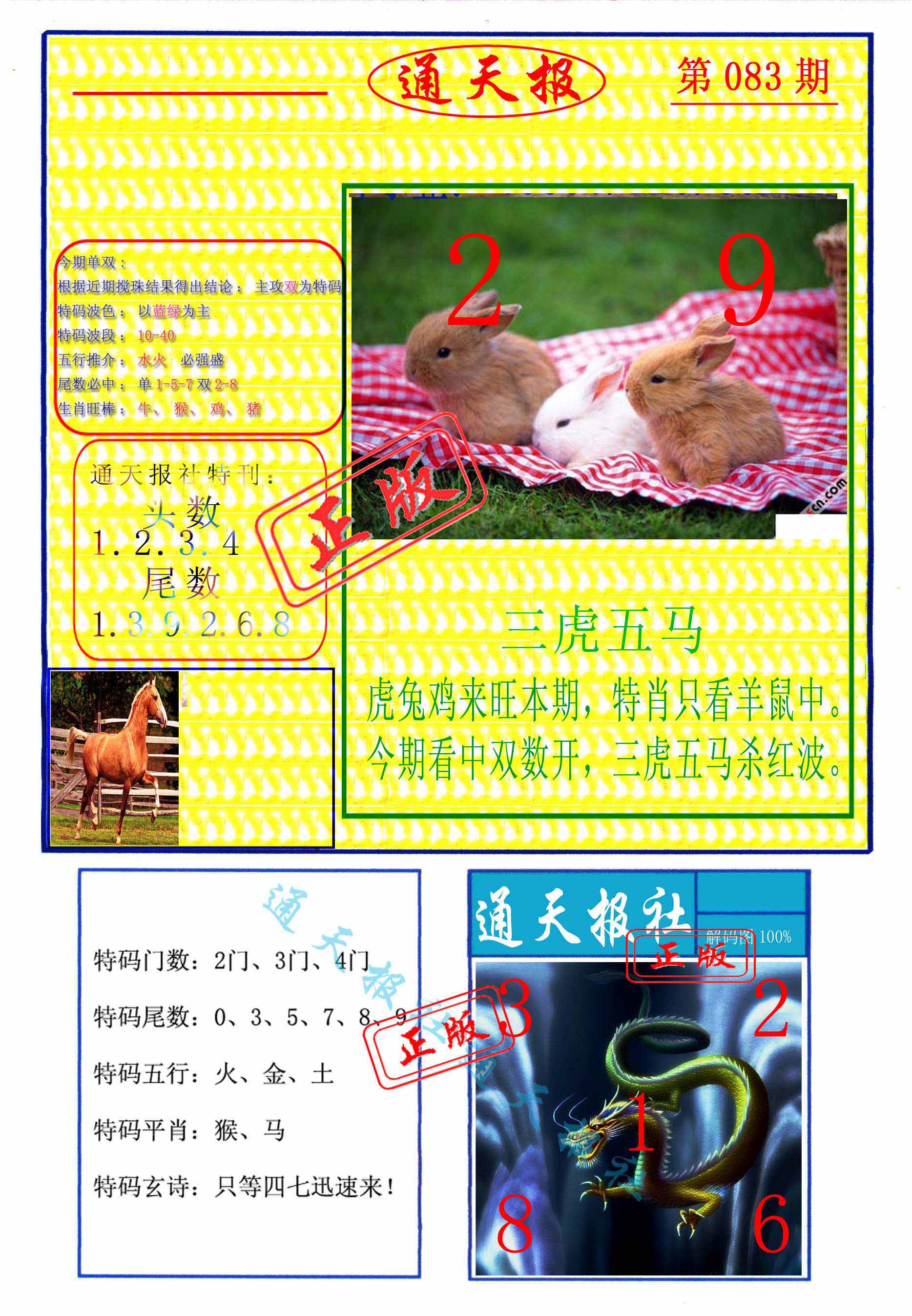 | 083期:⑨肖 | 马羊虎猴狗鼠牛兔龙 | 0 |