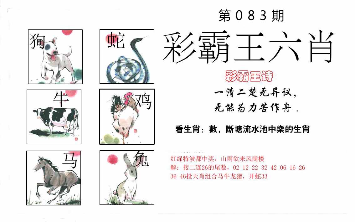 | 083期:⑤肖 | 马羊虎猴狗 | 0 |