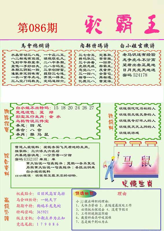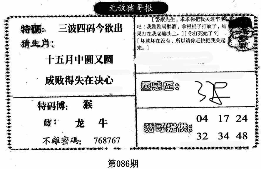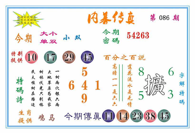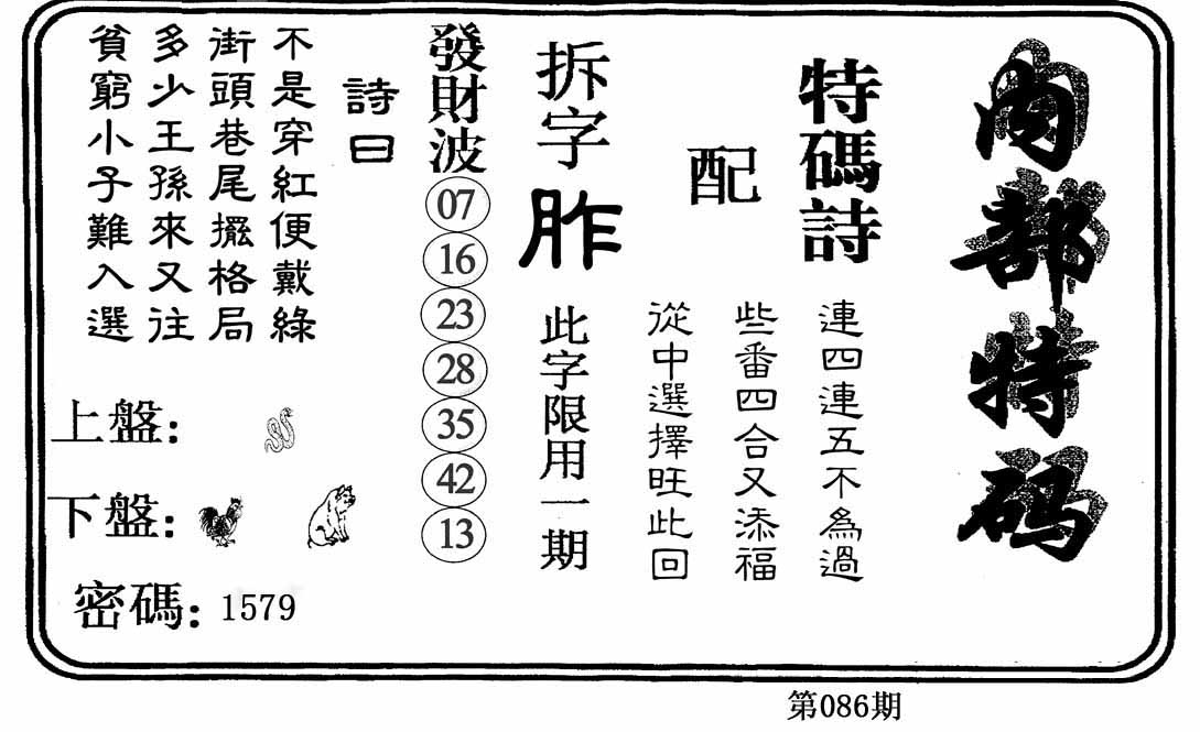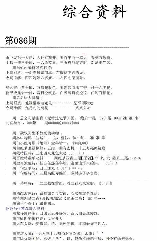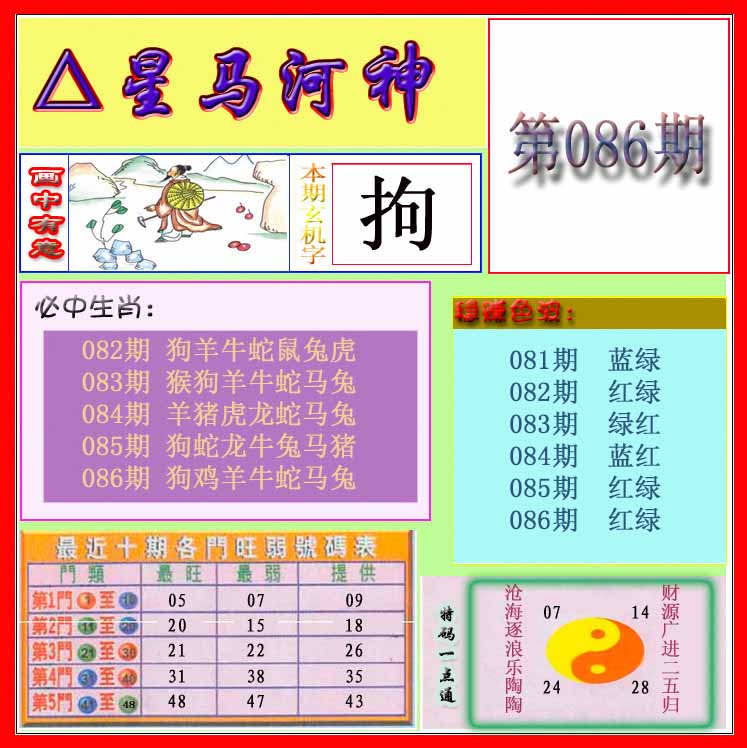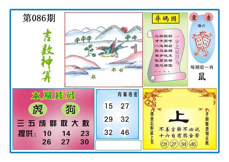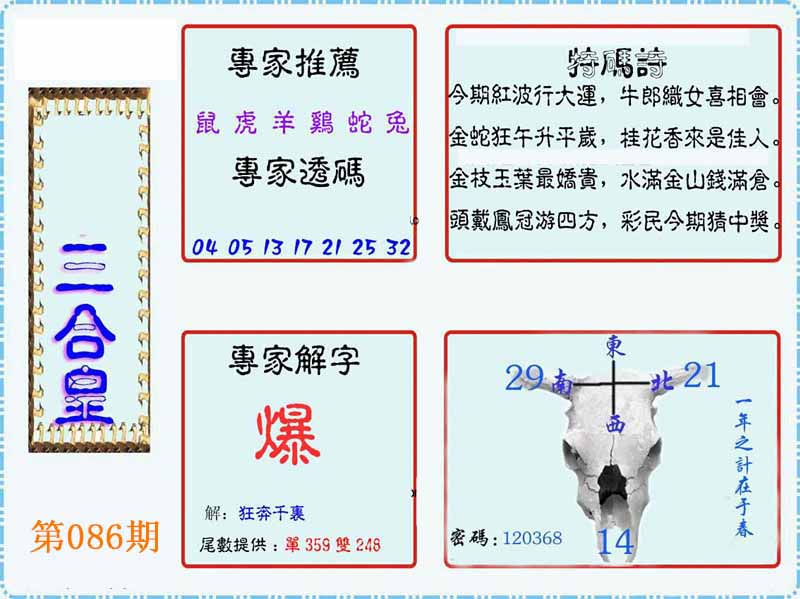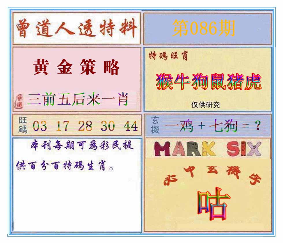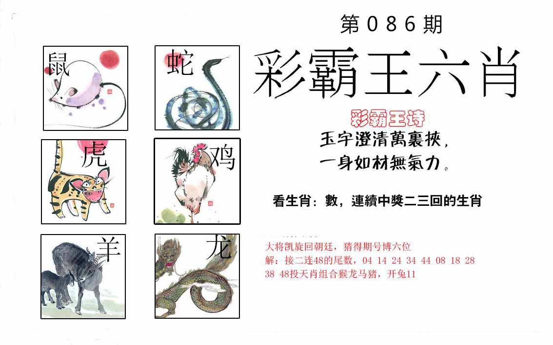 | 086期:⑤肖 | 狗鼠鸡牛马 | 0 |